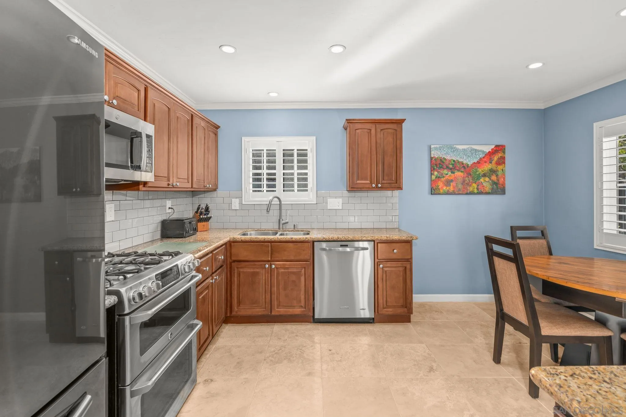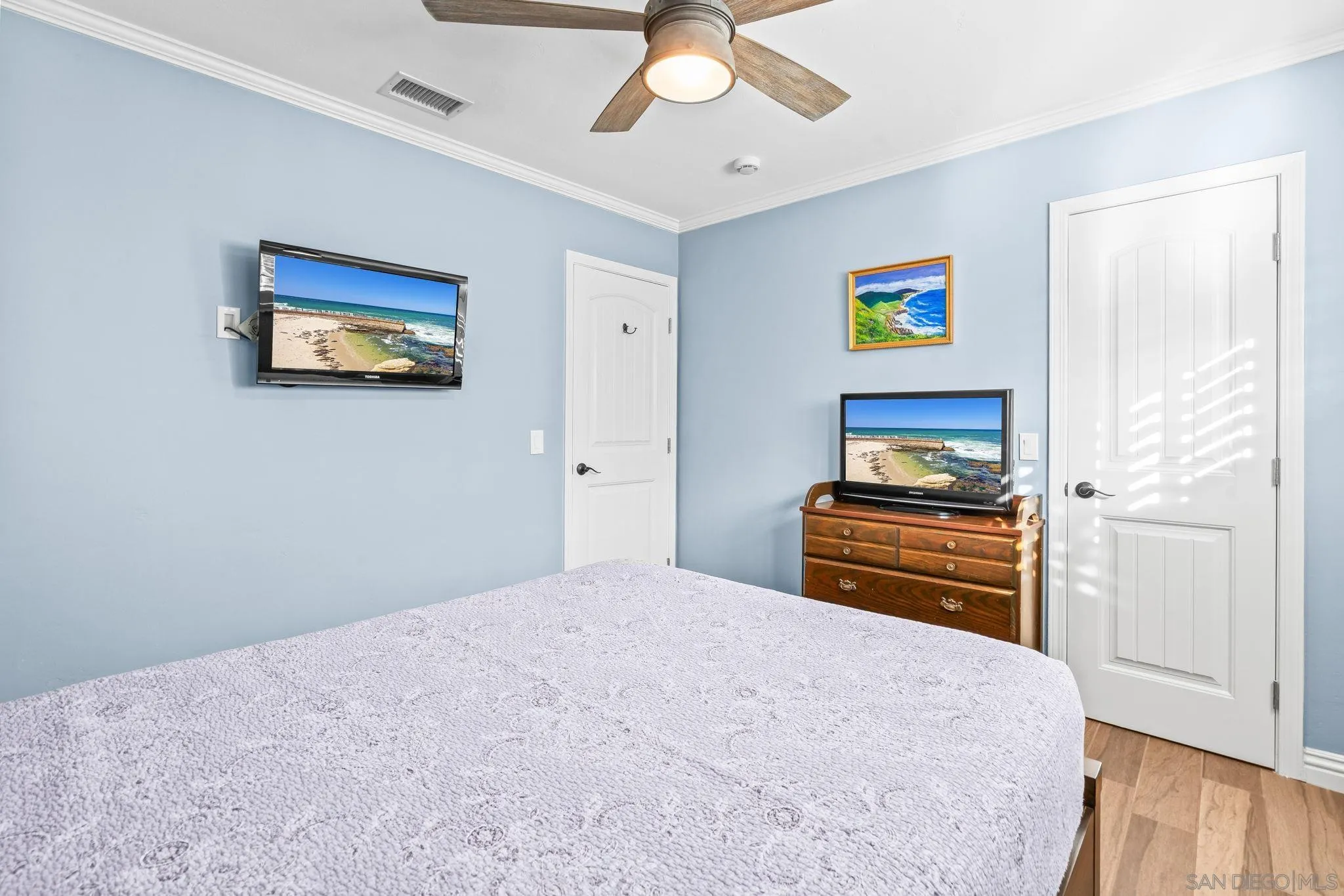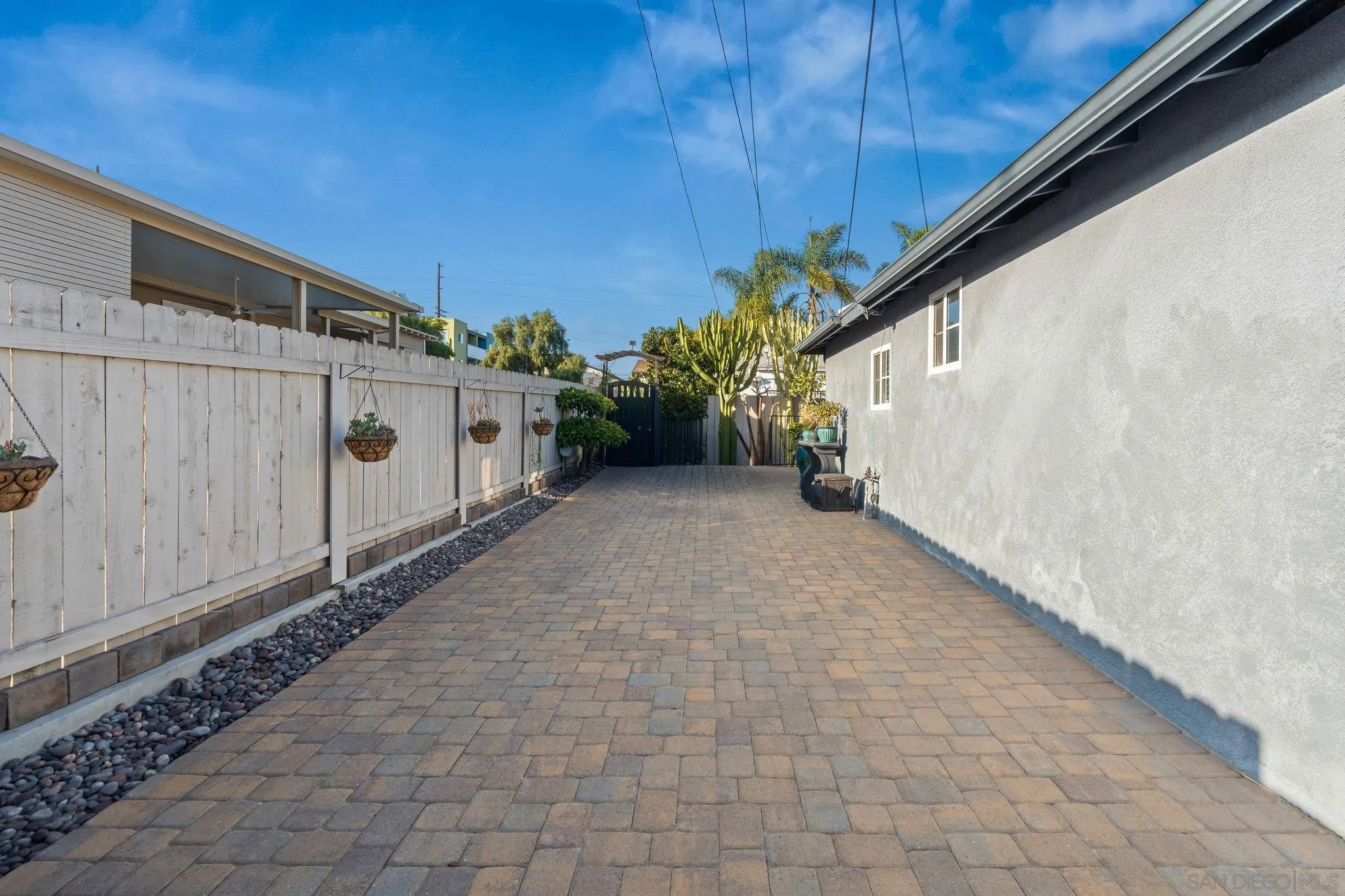 Experience quintessential Pacific Beach living in this gorgeous turn-key, detached single-story cottage, thoughtfully updated with timeless finishes and modern comforts throughout. A bright, airy living room welcomes you with travertine and natural wood-style porcelain tile flooring, crown molding, recessed lighting, plantation shutters, dual-pane windows, and designer paint, flowing effortlessly into the spacious eat-in kitchen featuring abundant cherry wood cabinetry, granite countertops with subway tile backsplash, stainless steel appliances, and gas cooking. Two nicely sized bedrooms and a beautifully renovated bathroom with a glass walk-in shower provide comfort and functionality, while smart-home upgrades—including a Nest thermostat, controlled lighting and central A/C and heat—add energy efficiency and peace of mind. Designed for effortless indoor–outdoor living, the home opens to a private yard with upgraded brick pavers, a large covered gazebo-style patio, tropical landscaping, fruit trees, and a generous walk-in storage shed with electricity. The fully gated perimeter—including secure gated parking with electronic magnetic-lock entry and exterior sensor lighting—offers enhanced privacy and convenience. Ideally located in the heart of Pacific Beach, this home lets you enjoy coastal breezes and an unbeatable lifestyle—walk or bike to Trader Joe’s, local dining and shops, neighborhood schools, Mission Bay, and the beach or bay in just minutes.