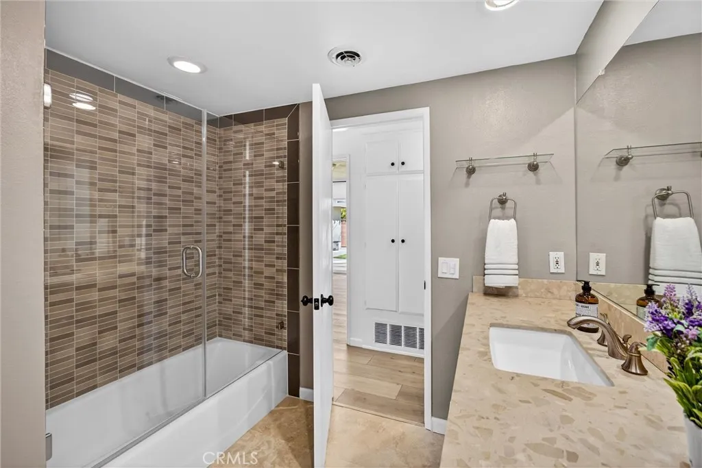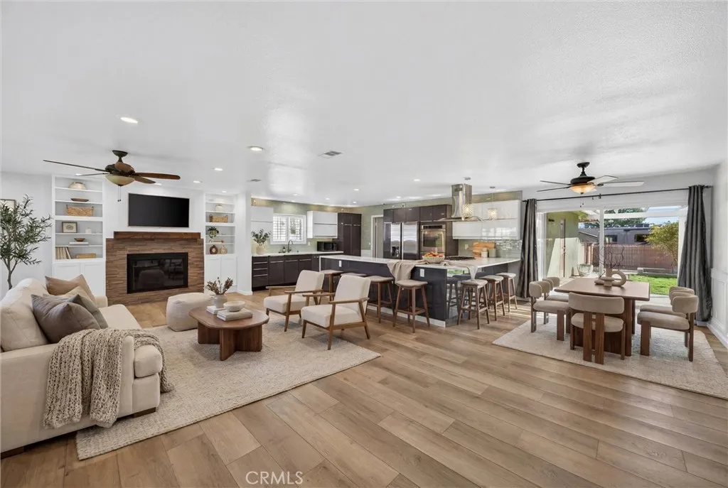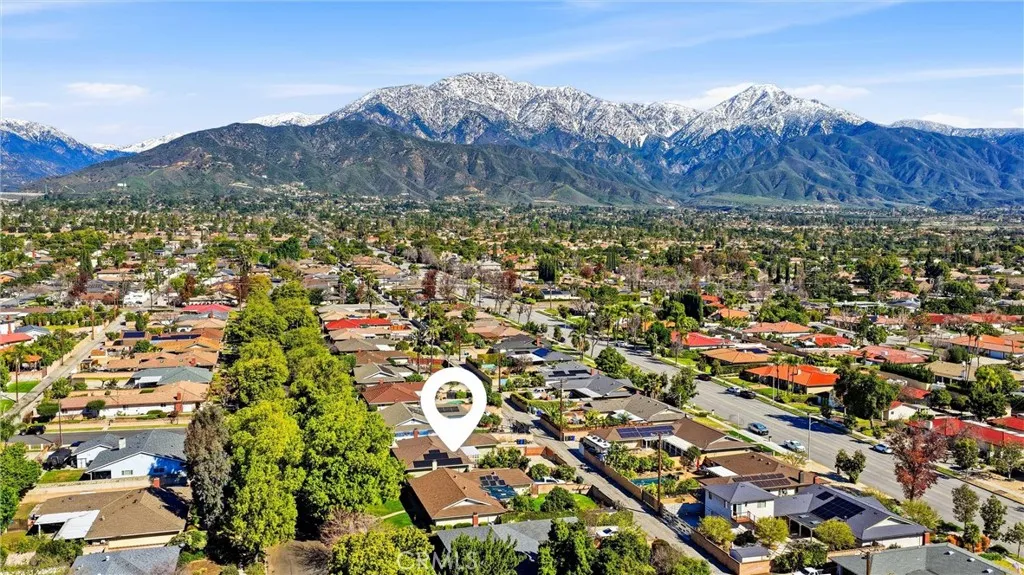 Stunning Fully Remodeled Single-Story Home in North Upland! Situated on a beautiful tree-lined street, this exceptional 4-bedroom, 2.5-bath residence showcases thoughtful upgrades and modern design throughout. Enter through the high-end shaker-style steel front door into an open, light-filled floor plan featuring luxury composite flooring and recessed lighting. The spacious living room is warm and inviting, highlighted by a contemporary stone fireplace, custom built-in bookshelves, and an abundance of natural light. The designer kitchen is a true showstopper, appointed with premium Dacor appliances, custom cabinetry, quartz countertops, and a wine/beverage refrigerator perfect for both everyday living and entertaining. Enjoy beautifully updated bathrooms with sleek, modern finishes. Major improvements include a new roof and SELLER OWNED SOLAR PANELS, providing both value and energy efficiency. Step outside to a nicely landscaped backyard offering a variety of fruit trees, including avocado, nectarine, apricot, and grapefruit, along with a lovely covered patio ideal for relaxing or hosting gatherings. Car enthusiasts and adventurers will appreciate the large gated RV parking complete with electrical hookup, water, and a dump station, plus a long driveway with ample parking. Located within the highly desirable Pepper Tree School District, this turnkey home combines style, comfort, and convenience truly move-in ready!