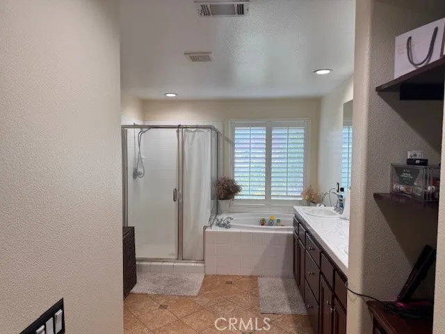 Welcome to this charming, move-in-ready home built by Pardee Homes in the desirable Fair Oaks Ranch community of Canyon Country. This spacious residence offers 4 bedrooms and 3 full bathrooms, including one bedroom and full bath on the main floorperfect for guests or extended family. The upgraded kitchen features granite countertops with full backsplash, a large center island with bar seating, stainless steel appliances (cooktop, dual ovens, microwave, and dishwasher), abundant cabinetry, and a large pantry with built-in shelving, all open to the generous living room. Interior highlights include hardwood flooring and designer tile throughout. Additional upgrades include plantation shutters, crown and baseboard moulding, raised-panel doors, recessed lighting, and an upstairs laundry room with a utility sink and cabinetry. The primary suite offers a cedar-lined walk-in closet and a spacious bathroom with a jetted tub and walk-in shower. The beautifully landscaped backyard is ideal for relaxing or entertaining, featuring stamped concrete, block walls, a raised pergola, mature palms, and pebble-accented grounds. The home also includes a tankless water heater. The large two-car garage has been finished with flooring and is currently used as a work studio, complete with its own air-conditioning unit. Enjoy access to fantastic community amenities including a pool, playgrounds, sports courts, parks, and a clubhouse, with convenient freeway and major shopping access just around the corner.