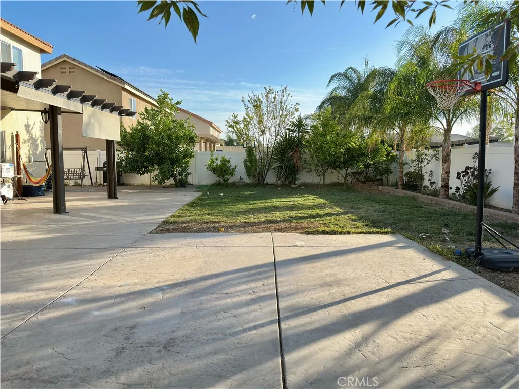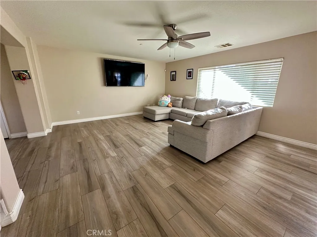 Solar to be fully paid off at close of escrow!!! Welcome to this beautifully maintained home in the heart of Perris, offering the perfect blend of modern style and everyday functionality. Step inside to discover elegant laminate flooring, granite countertops, and recessed lighting that brighten up the spacious open concept layout. The kitchen is a true centerpiece, featuring a large granite top island, ample pantry space, and plenty of room to cook, gather, and entertain. A big laundry room across from the downstairs half bathroom adds practicality and convenience, while a walk in deep closet underneath the stairs offers extra storage. Upstairs, youll find a large entertainment area/living room perfect for movie nights or more space for the family to get together. Step outside to a beautiful backyard designed for entertaining, surrounded by lush, green trees that provide both shade and serenity. The front yard is equally inviting, creating great curb appeal. Located just minutes from local schools and popular shopping plazas, this home offers the ideal balance of comfort, style, and accessibility. This home is nestled in a well established neighborhood surrounded by newly built communities, highlighting the areas growing appeal and long term desirability.