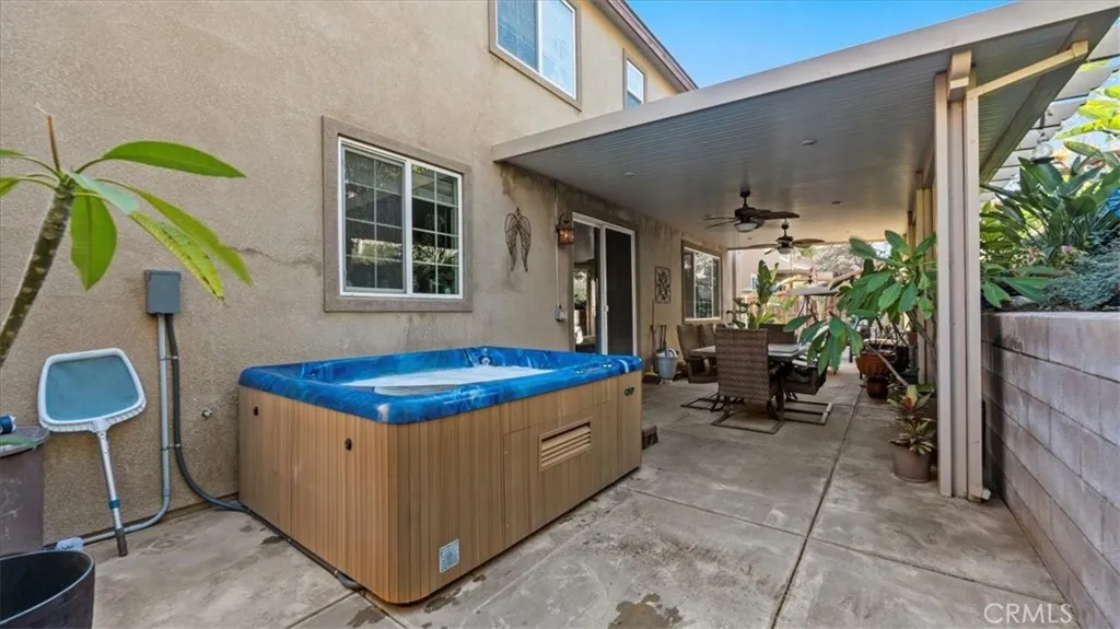 Beautifully upgraded 4-bedroom, 3-bath home offering spacious living and thoughtful design. This well-maintained property features a full convenient downstairs bedroom and a full bath, perfect for guests or multigenerational living. The main level includes a large living room and dining area, along with an expansive family room that flows seamlessly into the oversized, upgraded kitchencomplete with abundant counter space, cabinetry, and an open area ideal for everyday dining. Upstairs youll find three additional bedrooms, including a generous primary suite with a large bathroom and walk-in closet. The home also features a three-car garage with tandem parking and convenient mounted storage racks. Outdoor features include a covered patio, jacuzzi (included with the home), RV parking, and lush landscaping that enhances curb appeal. Additional upgrades include 28 solar panels, a new 50-gallon gas water heater, and Nest alarm compatibility ready for activation. Located in a community with desirable HOA amenities include two pools, splash pool for children to enjoy, a clubhouse, picnic area, and gym/exercise room and a park This is a must-see home!