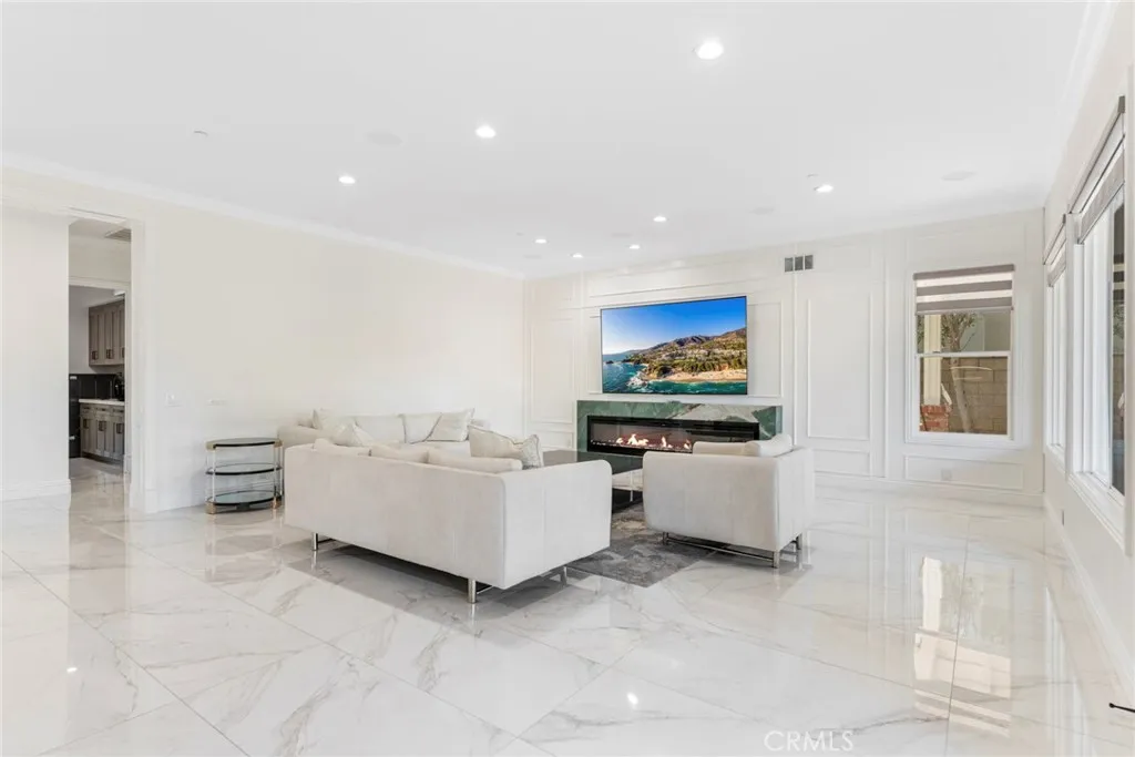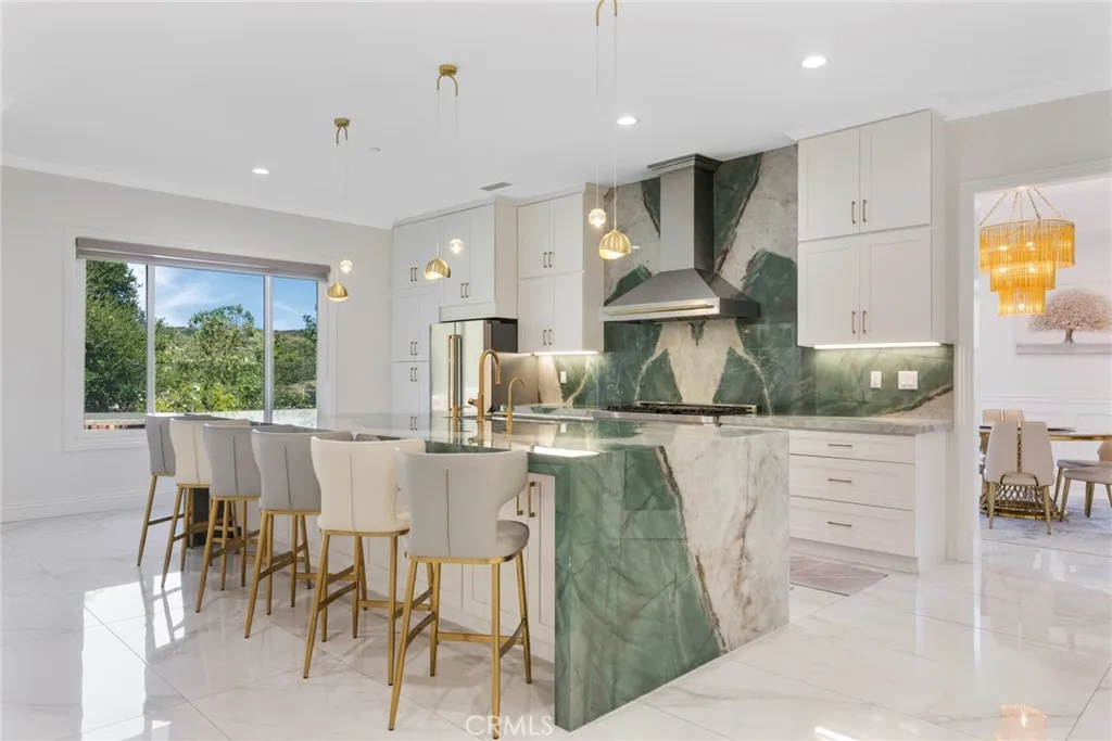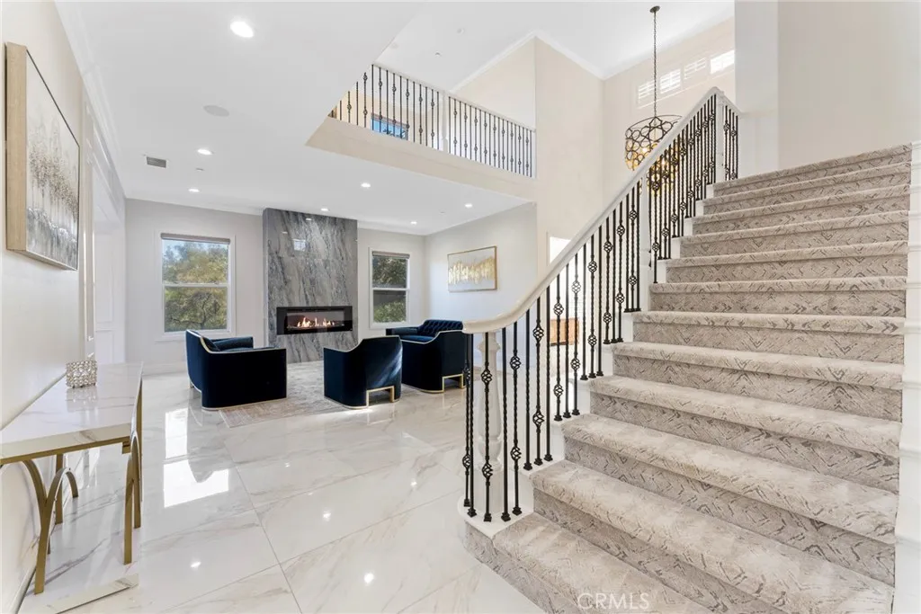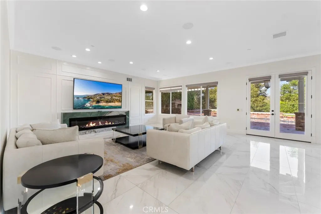 MOTIVATED SELLER $330,000 PRICE REDUCTION! Welcome to this newly remodeled luxury estate, tucked behind a secondary private gate in the prestigious Oak View enclave of the world-renowned equestrian community of Coto de Caza. This 5-bedroom, 4.5-bathroom residence has been reimagined into a refined sanctuary, offering breathtaking mountain views and exceptional privacy. Step into the grand foyer with soaring ceilings leading to a modern living room highlighted by a marble-accented fireplace, alongside a spacious home office. The formal dining room, accented with white embossed wainscoting, provides an elegant setting for entertaining. The chefs kitchen is the true heart of the home, featuring an oversized waterfall island with a matching marble backsplash, dual refrigerators, double ovens, a 6-burner range, and a designer hoodperfect for the culinary enthusiast. The main level also offers a guest suite with private bath, a well-equipped laundry room, and a rare four-car garage. Upstairs, the primary suite is a private retreat with a cozy fireplace, custom finishes, and a lavishly upgraded bathroom featuring a glass-enclosed shower, freestanding soaking tub, dual vanities with smart mirrors, and a custom walk-in closet. Three additional bedrooms, a media room, and a loft provide flexible living space. The entertainers backyard is a showpiece, complete with a custom pool and spa, built-in BBQ and bar, outdoor fireplace, and multiple seating areasall designed to showcase the sweeping mountain vistas. This exceptional estate combines luxury finishes, thoughtful upgrades, and un