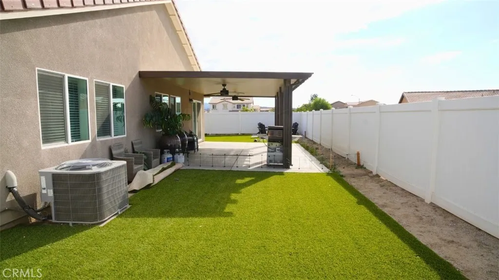 Beautiful 4-bedroom, 3-bath single-story home built in 2021 on a spacious lot. The open-concept layout features a bright kitchen that flows into the dining and living areas. The primary suite includes a private bath, with three additional bedrooms offering great flexibility for family, guests, or an office. The large backyard provides plenty of room to personalize. Located in a quiet San Jacinto neighborhood close to parks, shopping, and schools.