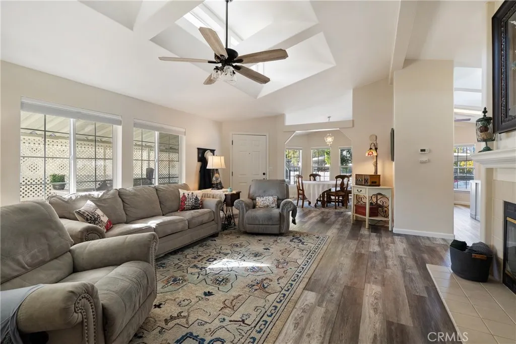 Located in Laguna Lake Mobile Estates, an all-age community with a pool, hot tub, library, two community rooms including one with a full kitchen, and a gym. This updated three bedroom, two bath home offers approximately 1,575 square feet of bright, open living space. The kitchen features an island and space for a breakfast table, opening to a separate dining area. Cathedral ceilings, high windows, and skylights fill the home with natural light. Relax by the wood-burning fireplace or soak in the indulgent tub. Recent updates include laminate flooring, fresh paint, and stove. Additional highlights include a deep two car carport, custom storage shed, indoor laundry, and a welcoming front porch. Come take a look today.