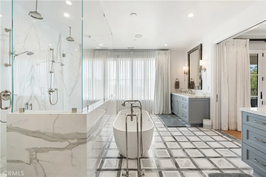 Welcome to 1816 Paseo Del Mar, a stunning custom-built Tuscan-inspired villa with modern elegance, situated on over a half-acre lot on one of the most prestigious streets in Palos Verdes Estatesdirectly across from the cliffs for unparalleled coastal proximity. This newer construction (built 2019) offers panoramic ocean views from the second floor and select upstairs areas, while the main level and backyard focus on resort-style privacy and entertaining. Enter through grand double doors into a dramatic two-story foyer featuring a massive crystal chandelier and dual sweeping staircases with custom wrought iron detailing. The open floor plan flows into a spacious living room with extra-tall ceilings and a grand fireplace, adjacent to a wet bar and temperature-controlled glass wine cellar. The gourmet chef's kitchen is equipped with high-end Wolf and Sub-Zero appliances and a large island topped in imported Carrara marble. The main level includes a guest bedroom with en-suite bath, a private office with attached bath, a total of 4 bathrooms, and an exceptional home theater perfect for entertaining or family movie nights. Upstairs, accessible by three staircases or an elevator, wide hallways overlook the grand living area below. The luxurious primary suite features a fireplace, automated window coverings for abundant natural light, a covered balcony ideal for sunset viewing, a spa-inspired bath with soaking tub, dual-head walk-in shower, custom cabinetry, Carrara marble inlaid floors, and his-and-hers vanities. The expansive walk-in closet includes custom built-ins and dual cen