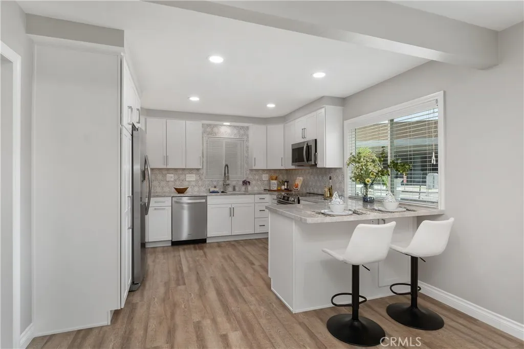 Welcome to 1837 N Studebaker Road, Long Beach - a beautifully remodeled, truly move-in-ready home with outstanding curb appeal. From the moment you arrive, youll appreciate the manicured landscaping, inviting tiled front porch, and elegant leaded glass front door with electronic keypad entry. Inside, the welcoming entry hall opens to a spacious living room highlighted by a classic brick fireplace and sliding glass doors that lead to a private backyard retreat. The brand-new gourmet kitchen is a true focal point, featuring premium Master Brand Diamond cabinetry with under-cabinet LED lighting, Quartzite Taj Mahal countertops, and a custom marble mosaic backsplash. A high-end Kraus Turino 33 fireclay workstation sink with cutting board and drying rack, paired with a Kohler Pro faucet, delivers both beauty and functionality. Top-of-the-line Frigidaire Gallery stainless steel appliances and an extra-large capacity Whirlpool dishwasher complete this impressive space. The kitchen flows seamlessly into the dining area, where a large picture window captures views of the lush front yard. The primary bedroom offers a peaceful escape with direct access to a private patio, ideal for relaxing. The spa-inspired en-suite bathroom has been fully remodeled with a dual-sink vanity, granite countertops, and a custom walk-in shower with frameless glass enclosure. The hall bathroom is equally updated, showcasing granite countertops, a custom-tiled tub/shower combination, and a frameless shower door. Two additional nicely sized bedrooms provide flexible options for family, guests, or a home offi