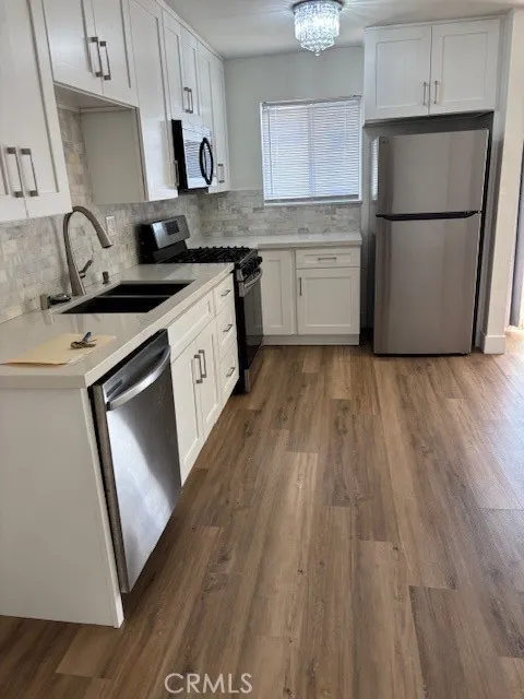 JUST REDUCED and Sellers want this one sold...we can get your buyer financed!!!...Welcome to this gorgeous remodeled top floor Penthouse level condominium home in the heart of Tarzana. Upgraded throughout with the finest detailing makes this one so special in an incredible location. The open kitchen now features dual stainless steel sinks, Samsung stainless appliances including gas four burner range/oven, microwave, dishwasher, and a brand new LG stainless refrigerator/freezer. Wait until you see the impeccable quartz counters with designer tile splash back and designer cabinetry. There are brand new wide plank laminate flooring throughout this spacious unit. The dining area has a ceiling fan lighting which looks out to the spacious balcony that overlooks the openness of quiet space with partial views out to hills. This one is extremely light and bright with the southwest views. Location is in the rear of the building for added quietness. The unit has just been painted. Both of the bedrooms now feature recessed lighting. Each bedroom is nicely sized with excellent closet space and full baths with designer shower fixtures. The one bedroom also features a vanity area. This home feels so much larger than the actual square footage. The HOA is only $480/month as of January 2026 and includes water, pool and spa area, community BBQs, community laundry on each level (only steps away from the unit on the top level), recreation room, trash, sewer, and pets are allowed. Gated community for added security. Check the comps and other units for sale in this complex and this remodeled top