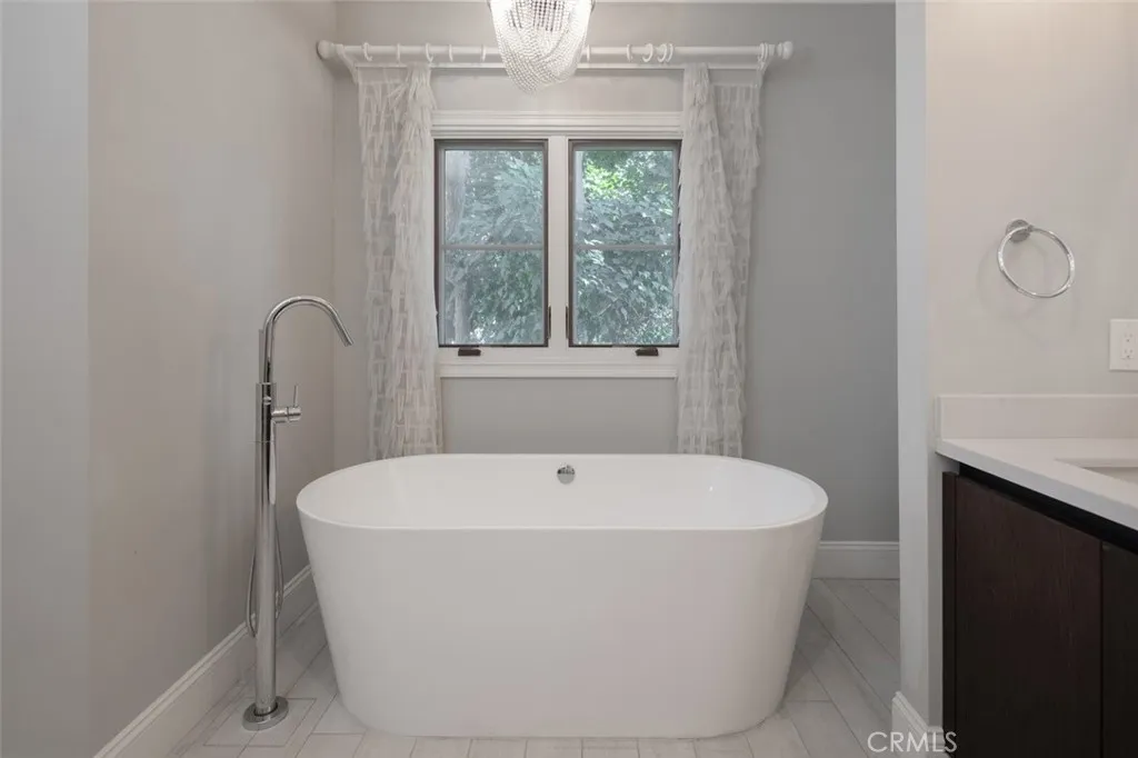 Tucked beneath the foothills of the San Gabriel Mountains, this detached Spanish-style townhouse in Pasadena evokes a quiet sense of elegance, where form and function are finely attuned. Defined by its soft arched windows, terracotta rooflines, and serene garden approach, the home pays homage to timeless Californian architecture while embracing a distinctly modern sensibility. Inside, the double-height living area is drenched in natural light, framed by tall French doors that invite the outdoors inward. A restrained palette of warm timber floors, crisp white walls, and custom built-ins grounds the home in calm. The kitchen is a deliberate contrast of sleek, minimalist cabinetry paired with polished stone surfaces and a subtle mosaic backsplash, reflecting a contemporary shift in tone and function. Three generous bedrooms are thoughtfully arranged, with one downstairs and the others on the second floor, providing retreat and rhythm to the layout. The primary suite captures leafy outlooks and offers a quiet refuge, complete with a spa-inspired ensuite and considered storage solutions. With direct access to two underground garage spaces and a location just moments from Pasadenas cultural and commercial heart, this residence balances privacy with urban connection. It is a home that values detail and longevity and in doing so, carves out a space that feels both intimate and enduring.