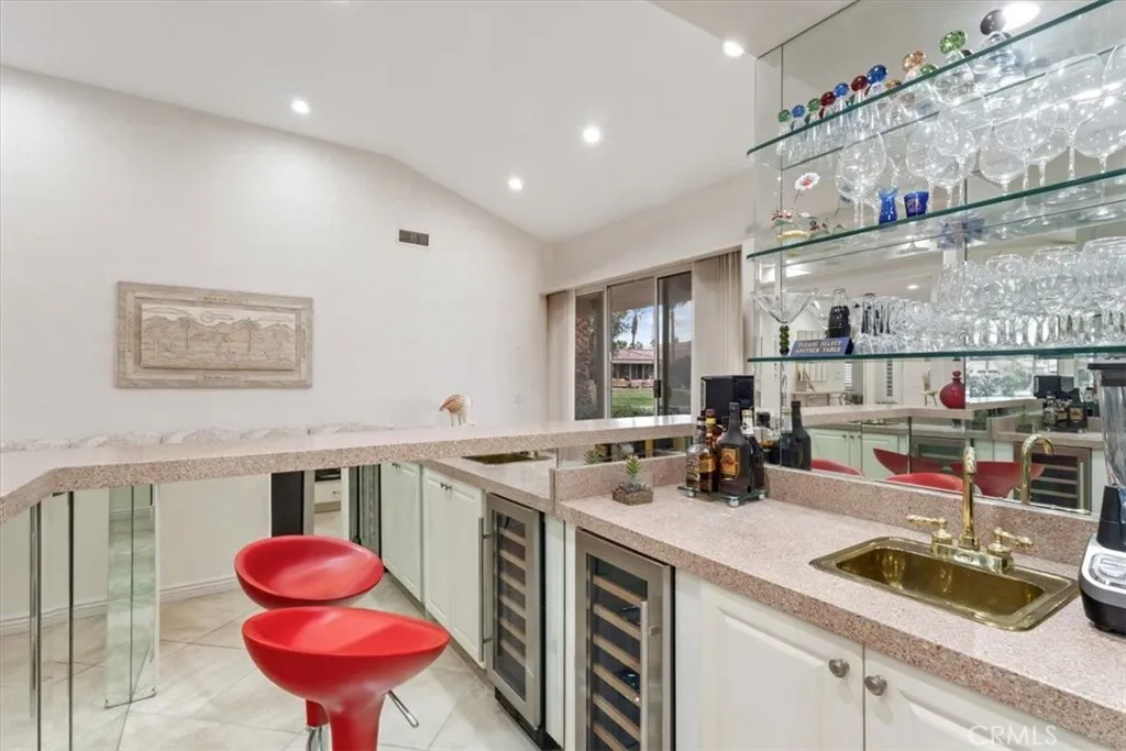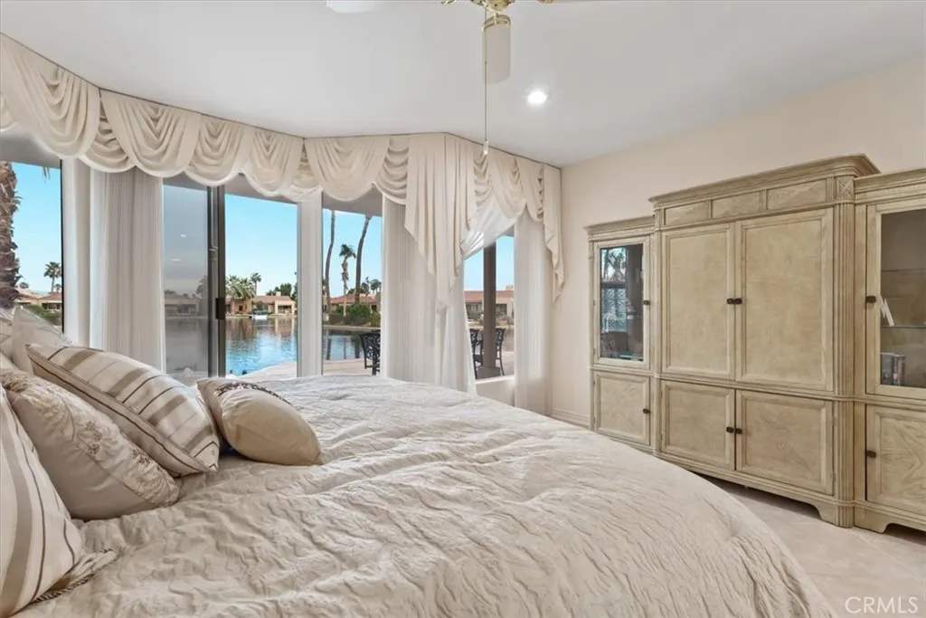Experience luxury lakefront living in this beautifully maintained one story, 3-bedroom, 3-bath, 2,625 sq ft residence located in the prestigious guard-gated Lake Mirage community. This highly desirable floor plan offers abundant natural light, high ceilings, an open-concept design, and seamless indoor-outdoor flow. The spacious step-down living room features a cozy fireplace, wet bar, and an inviting layout perfect for entertaining. Each bedroom offers direct access to its own bathroom, including two primary suites with oversized spa-inspired baths. Primary bathrooms include soaking tubs, separate showers, double sinks, and private toilet areas for added comfort and privacy. Take in breathtaking lake and southern mountain views from the expansive waterfront patio and your private dock. Enjoy resort-style amenities including 11 pools/spas, 10 tennis courts, 4 pickleball courts, clubhouse, fitness center, plus boating, kayaking, and an attached 2-car garage with direct access - minutes to shopping, dining, and Palm Springs Airport.