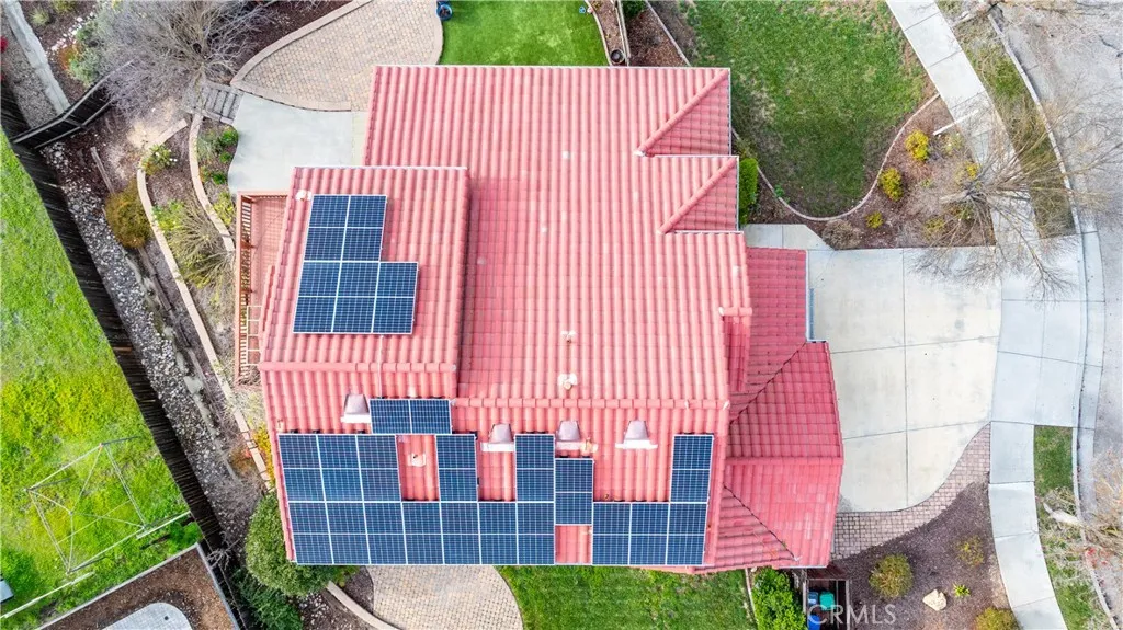 Spacious five-bedroom home on a quiet cul-de-sac in Paso Robles wine country. Set on a generous 12,524 sq ft lot, this bright, thoughtfully updated home offers flexible living for everyday comfort and entertaining. Vaulted ceilings enhance the formal living and dining rooms, while the open kitchen features granite countertops, a center island with induction cooktop, five-burner range, Bosch dishwasher, and casual dining nook. The adjoining family room with fireplace creates a warm gathering space, and a downstairs bedroom with full bath is ideal for guests or a home office. Upstairs, the primary suite offers a private balcony and en-suite bath with dual sinks and jetted tub, while additional bedrooms share a full bath with dual sinks. Recent upgrades include wood flooring, remodeled primary bath, modern lighting, cellular blackout shades, smart garage opener, and included refrigerator, washer, and dryer. Energy-efficient features include owned solar (NEM 2.0) and a Tesla EV wall charger. Landscaped yards offer fruit trees, patio space, and room to relax or entertain.