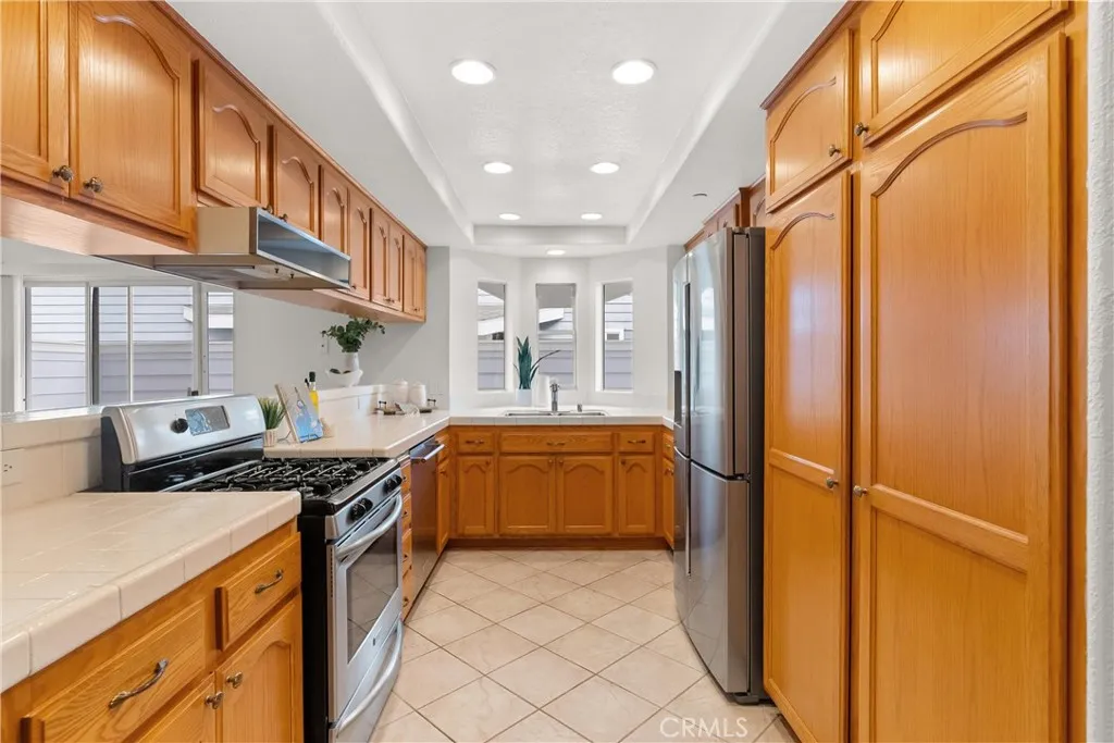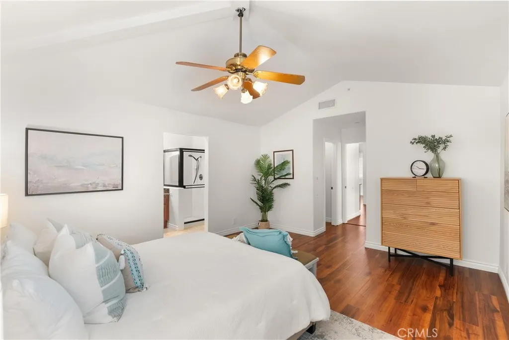 Every mile closer to the coast brings a shift in pace, and just under three miles from the beach, you arrive somewhere special. Tucked inside the gated community of Seawind, this immaculate and thoughtfully updated 1,846 square foot townhome is ready to welcome you home. As an end unit, natural light pours in through the windows, offering both brightness and privacy. A gated, brick lined front patio sets the tone, an inviting place to linger beneath mature shade trees, listen to the birds, and ease into the day. Step inside and feel the continuity of laminate flooring that carries you through the home. The living room is warm and welcoming, anchored by a cozy fireplace with tile accents and a wood mantel, and flows seamlessly into the dining area, perfect for gatherings both planned and spontaneous. The galley kitchen is designed for real living, featuring a generous breakfast bar, abundant cabinetry, a pantry, and stainless steel gas appliances, including a microwave and refrigerator. Just beyond, a separate family room keeps conversations going while meals come together. Slide open the door to a second private patio, ideal for barbecuing, entertaining, or enjoying Southern California evenings under the stars. This is where you host, unwind, and live like a boss. A remodeled powder room completes the downstairs living space. Upstairs, the private quarters include three bedrooms and a conveniently located laundry room. The primary suite is a true retreat, showcasing vaulted ceilings, plantation shutters, a ceiling fan, and a coveted walk-in closet. The ensuite bath features