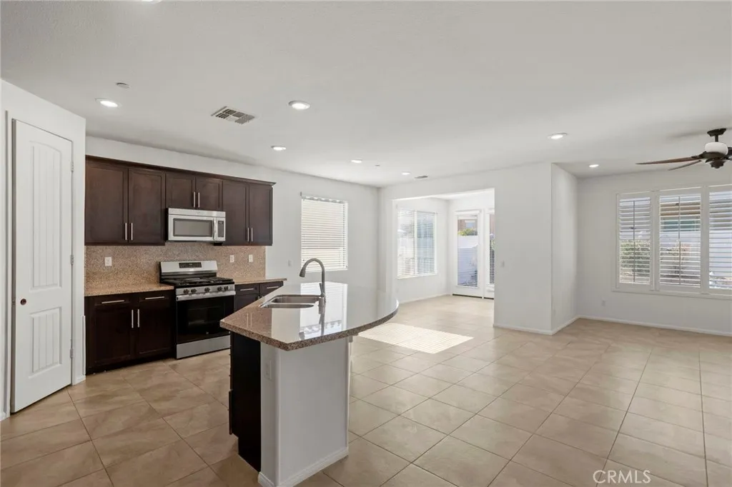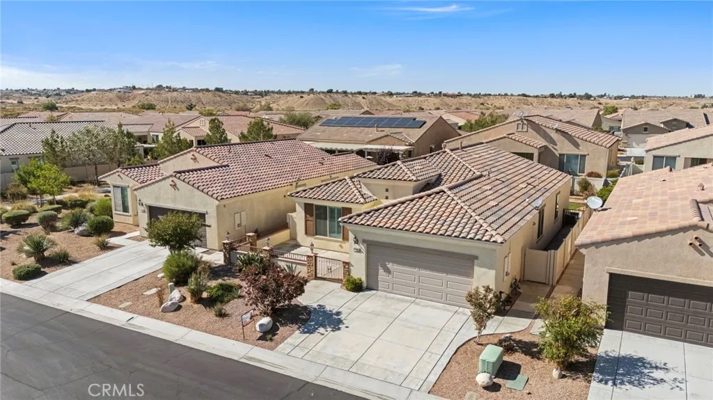 Welcome to Solera at Apple Valley, one of the High Deserts most desirable 55+ communities where comfort, convenience, and resort-style living come together. This beautifully maintained single-story home offers 2 bedrooms, 2 bathrooms, and a versatile flex space perfect for a home office, hobby room, or den. The home has been recently painted inside and features a bright open-concept layout connecting the living, dining, and kitchen areasideal for both everyday living and entertaining. The spacious kitchen is designed for gathering, featuring rich espresso cabinetry, brown-speckled countertops, a large center island with seating for four and new stainless steel stove and dishwasher. The primary suite offers a peaceful retreat with a spacious bathroom complete with a large soaking tub, dual-sink vanity, and separate walk-in shower. A second bedroom and bathroom are across the home and provide comfortable space for guests. Enjoy low-maintenance outdoor living with drought-tolerant front landscaping and a beautifully finished backyard featuring a large concrete patio and artificial turf, perfect for relaxing or entertaining. Additional highlights include direct access to a 2-car garage and indoor laundry room. Residents of Solera enjoy access to outstanding amenities including the Aspen Clubhouse, pool, spa, tennis courts, fitness center, golf course access and a vibrant calendar of social activities, making it easy to stay active and connected. Experience the ease of low-maintenance living in a community designed for lifestyle and comfort.