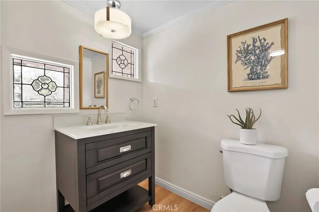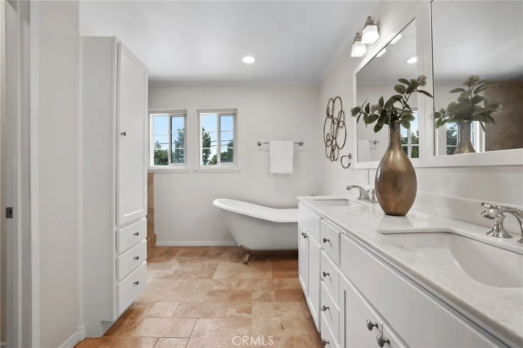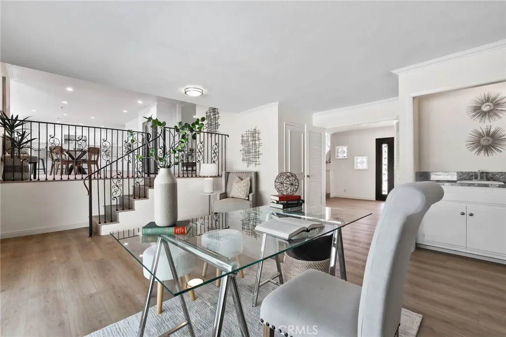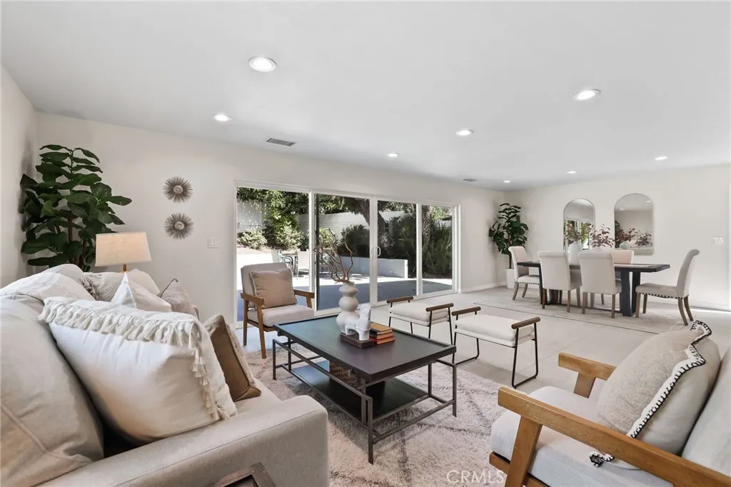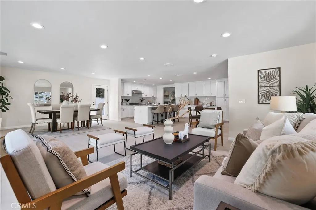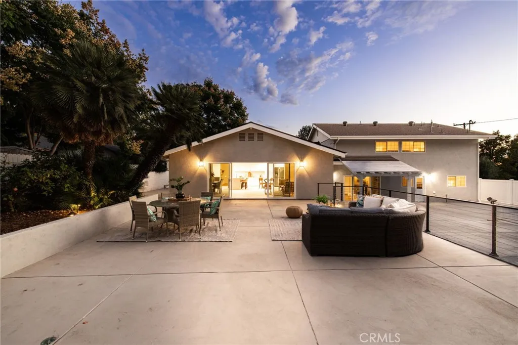 Welcome to this beautifully remodeled home where timeless architecture meets contemporary elegance. Set on a spacious half-acre corner lot, this property not only offers incredible privacy and curb appeal but also presents a fantastic opportunity for an ADU, guest house, or future expansion. Step through the custom wrought-iron double doors into a bright, airy interior featuring wide luxury vinyl plank flooring, designer finishes, and modern railings that enhance the open layout. The split-level design offers multiple living spaces filled with natural light, perfect for both everyday living and entertaining. The chef-inspired kitchen showcases white shaker cabinetry, quartz countertops, stainless-steel appliances, and an expansive island that flows seamlessly into the dining and family areas. Just off the main living area, a dedicated office with sliding glass doors opens to the patio, ideal for working from home. A guest bedroom and full bath downstairs provide comfort and flexibility for visiting family or multi-generational living. Upstairs, the primary suite is a tranquil retreat featuring a spacious layout and a luxurious ensuite bath with dual vanities and a freestanding clawfoot tub. Three additional guest bedrooms and another full bath complete the upper level. The backyard is an entertainers dream, expansive, private, and low-maintenance, with multiple zones for outdoor dining, lounging, and play. Theres also ample parking space for an RV, boat, or additional vehicles, further enhancing the propertys versatility. Located in a serene, desirable neighborhood, this ho