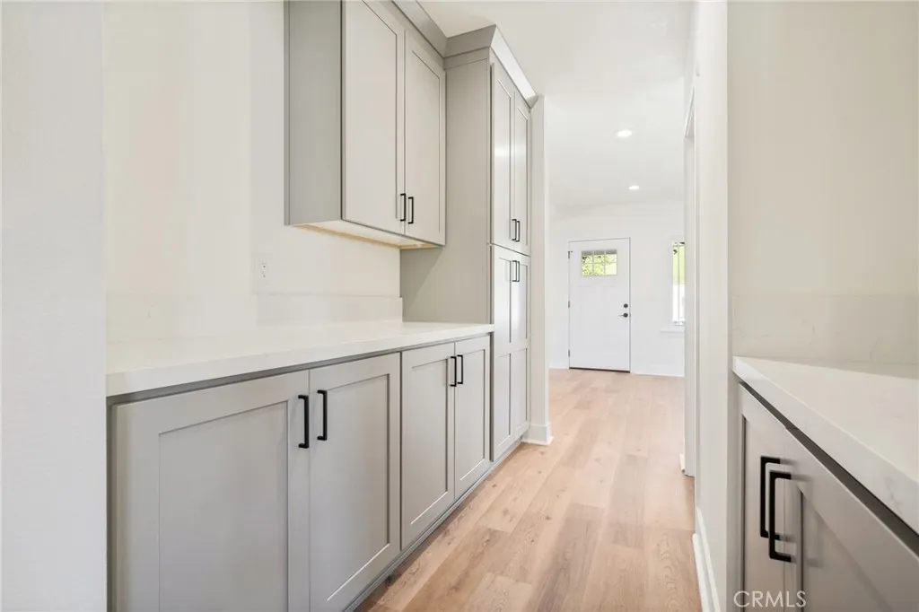 Beautifully remodeled three-bedroom, two-bathroom, 1,540 SF home situated on a spacious lot with a gated driveway and an additional detached room in the backyardideal for an office, playroom, gym, or extra storage. Conveniently located near downtown Pasadena, Pasadena City College, and major freeways. A charming front porch welcomes you into the light-filled living room with large front-facing windows and an open layout. The updated kitchen features new cabinetry, quartz countertops with designer backsplash, and stainless steel appliances including a gas range, dishwasher, and refrigerator. A dedicated laundry room offers direct access to the side driveway. The oversized primary suite includes a walk-in closet with custom built-ins and French doors opening to the backyard. The primary bathroom boasts a dual-sink vanity with quartz counters, a soaking tub, and a spacious walk-in shower. Two additional bedrooms offer generous closet space and share a full hallway bathroom with a shower/tub combination. Additional built-in hallway storage adds convenience. Upgrades include: new interior and exterior paint, vinyl wood flooring thru-out, raised panel interior doors, recessed lighting, tankless water heater, upgraded baseboards, interior window blinds, ceiling fans, and a newer front door. Enjoy a private, gated driveway with extra rear parking and a low-maintenance backyard and front yard finished with artificial turf, perfect for relaxing or entertaining.