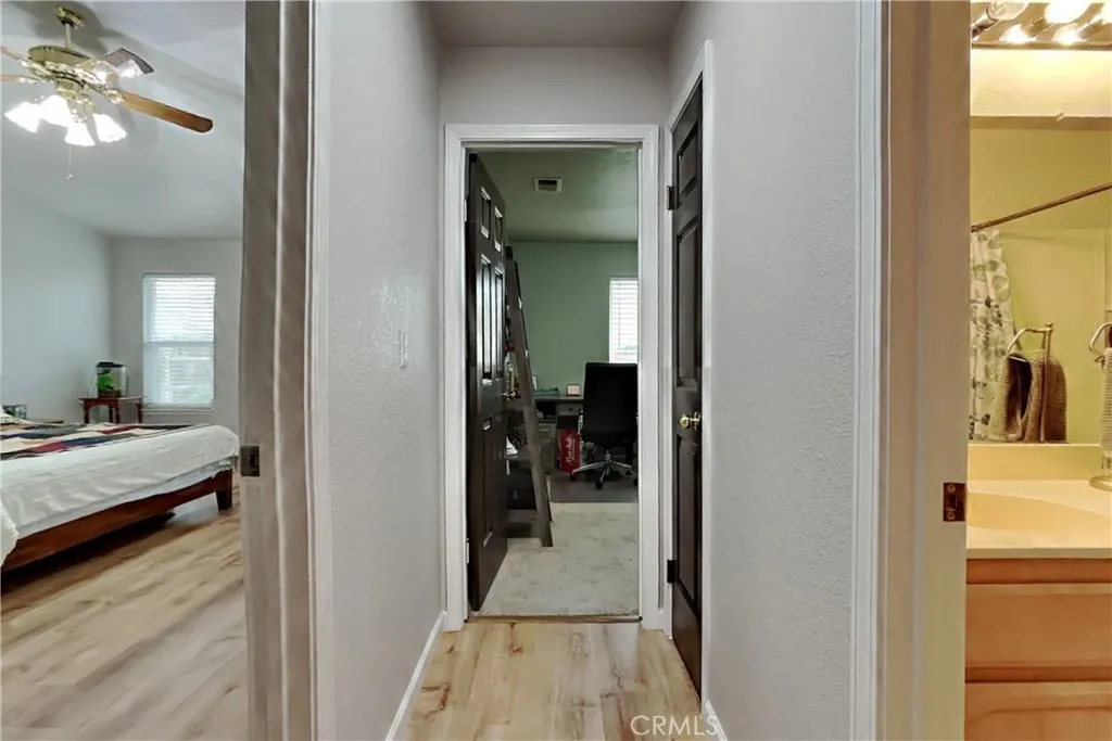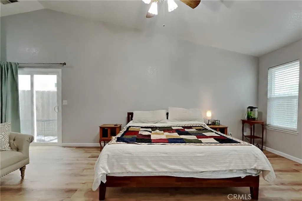 MUST SEE - Turlock beauty in Royal Oaks - You will know that this is the one as soon as you walk-in! This is the most desired 3BR/2BA single-story floorplan in the development featuring a huge master bedroom suite, 2 secondary bedrooms, and 2 full bathrooms. Welcoming entry area with updated sidelite window and security door. Spacious kitchen featuring luxury vinyl plank flooring, plenty of cabinets, tile countertops, radiant-electric range/oven, built-in microwave, upgraded faucet, LED recessed lighting, and awesome insulated patio door with integrated mini-blinds, pet door, and retractable phantom screen that leads to outside patio area to enjoy your morning coffee. Adjacent dining area has high ceilings and plenty of room for large gatherings. Large living room features soaring open-beam ceilings with fan, cozy wood-burning fireplace, lots of natural light, and newer dual-pane sliding-glass door to rear patio area. Hallway with LED recessed lighting, coat closet, linen closet, and inside laundry area with built-in cabinets. Hall bathroom features an updated extra-deep soaking tub with shower and LVP flooring. HUGE master bedroom with vaulted ceiling with fan, plenty of room for sitting area or exercise equipment/office furniture, and newer dual-pane sliding-glass door with outside access. Master bathroom with vaulted ceiling, dual sinks, large vanity/dressing area, walk-in closet with custom built-in organizer/shelves, and toilet area featuring a shower with glass door and recessed lighting. Both secondary bedrooms feature upgraded carpet and ceiling fans. Low-maintenanc