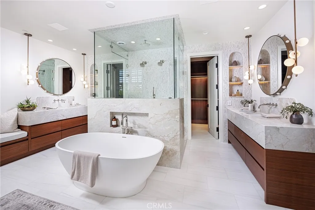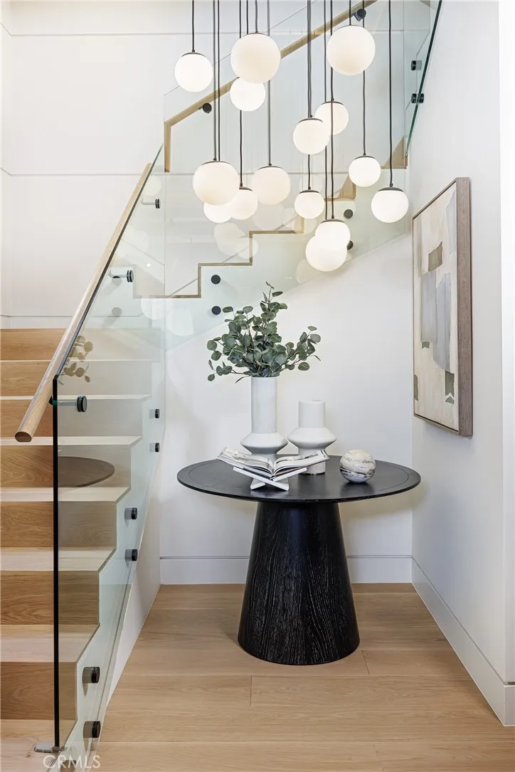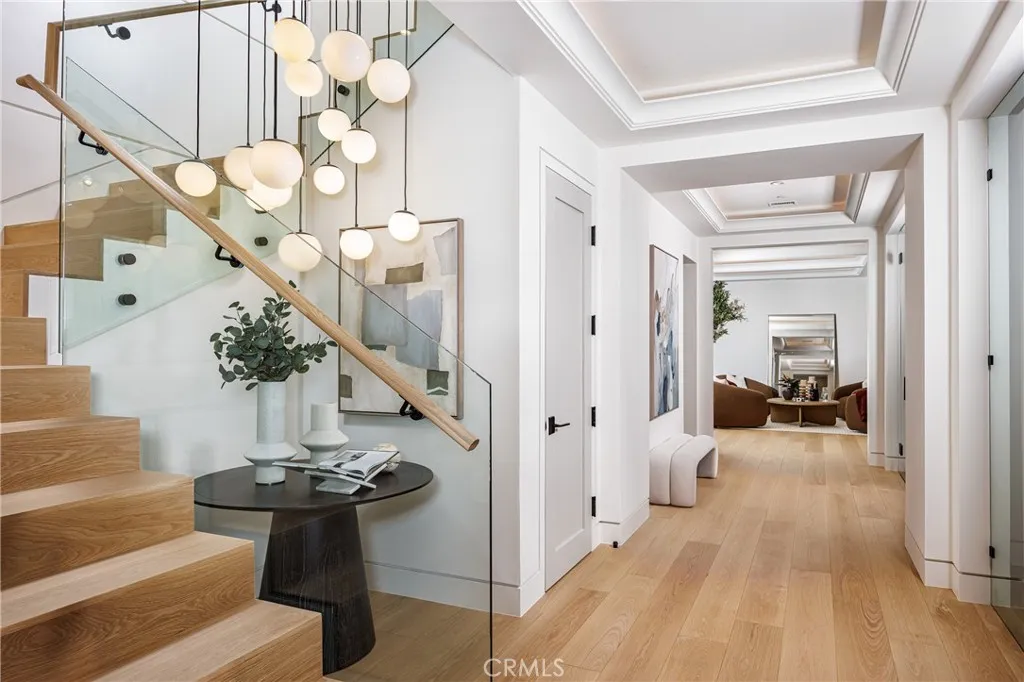 A Rare Architectural Statement in the Port Streets. Quietly commanding in one of Newport Beachs most coveted neighborhoods, this reimagined contemporary estate has undergone a comprehensive, whole-home remodel, elevating nearly 7,924 square feet through thoughtful design, precision craftsmanship, and elevated material selections. Natural light moves effortlessly throughout the home, anchored by custom-crafted wide-plank white oak flooring, soaring ceilings, and a dramatic three-story glass stairwell crowned with a bespoke chandelier. Walls, plaster, lighting, kitchens, and baths have all been meticulously redesigned, resulting in interiors that feel refined, cohesive, and timeless rather than trend-driven. The chefs kitchen is sculptural yet highly functional, appointed with Viking appliances, expansive stone surfaces, and sleek custom cabinetry. Accordion glass doors open to newly designed outdoor spaces, where Garden Studiodesigned landscaping and completed pool engineering allow the next owner to finalize a resort-style setting tailored to their vision. The 2,500-square-foot lower level is immersive and unexpected, offering a glass-enclosed gym, executive office, multipurpose or playroom, and a fully upgraded private home theater with new equipment, custom velvet seating included, stadium tiers, and a performance stage. A two-story exterior fountain adds a dramatic architectural element and a sense of arrival. Upstairs, four en-suite bedrooms provide privacy and volume, including one with a hidden secret room. The primary suite is a private retreat with fireplace, deck,