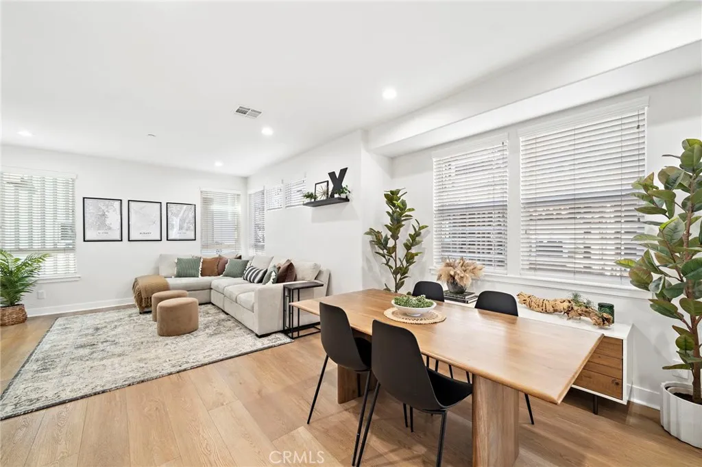 The Cadence Community is an exclusive enclave of only five beautifully designed single-family homes built in 2016 with low HOA, showcasing modern luxury finishes throughout three stylish levels and ideally located in Costa Mesas vibrant Westside, where exciting revitalization continues daily with an ever-growing selection of dining and shopping destinations unlike anywhere else in Orange County. This sleek and stunning residence offers an impressive layout beginning with a first-floor foyer and flexible workspace area, an inside laundry room with added cabinetry, and direct access to the finished two-car garage featuring an epoxy floor and built-in overhead storage. The second level reveals a light-filled open-concept living space highlighted by a spacious living room with media niche and chic floating shelving, a full-size dining area, a gourmet granite kitchen with upgraded soft-closing cabinetry and stainless steel appliances, a beautifully remodeled powder room with quartz vanity, and a sliding door that opens to a convenient balconyperfect for barbecuing, evening dining, or sipping morning coffee with refreshing ocean breezes, as the home is just minutes from the surf and sand of Newport Beach. The upper level features a generous landing with custom built-in white shaker cabinetry and extended counter space, along with two spacious ensuite bedrooms. The primary suite offers a large mirrored walk-in closet with extensive California Closet custom organizers, dual sinks, a tub/shower combination with clear glass enclosure, updated lighting, and a private water closet, whi