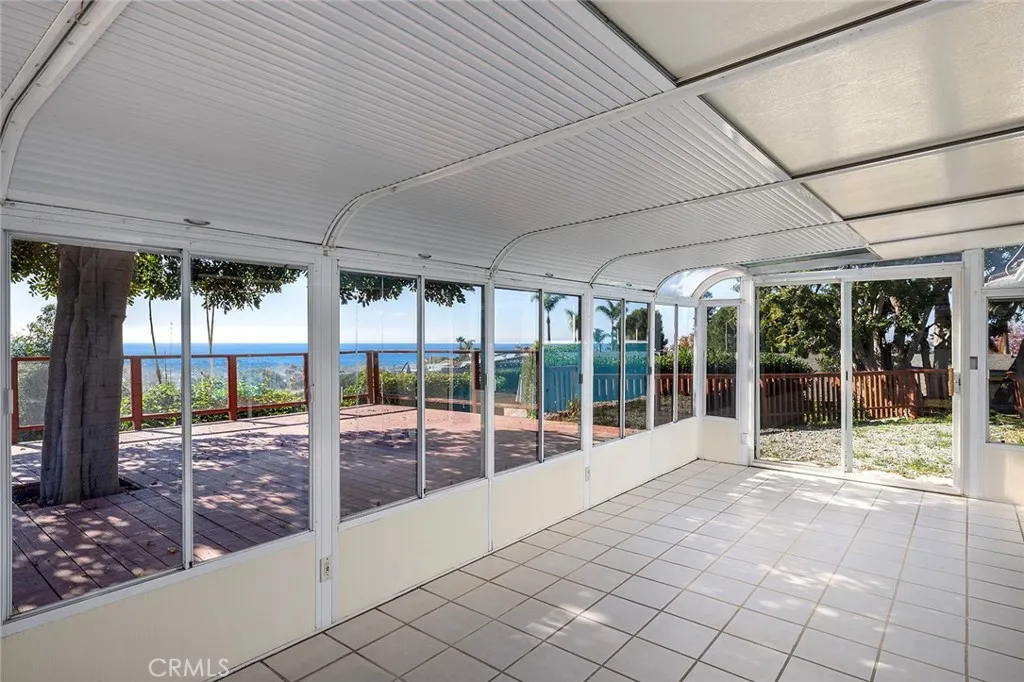 Perched above a lush coastal canyon in central San Clemente, this single-level Mid-Century Ranch captures the ease of everyday living by the sea. Ocean views unfold from the moment you arrivesunsets stretching wide, canyon greens rolling below, and that familiar coastal light that softens every corner of the home. Built in 1962 and beautifully bright, the layout moves with an effortless flow. The living room, warmed by a classic fireplace, opens to the dining area, while the kitchen blends charm and function with solid-surface counters, white cabinetry, a peninsula, and a two-drawer dishwasher. A cozy beamed-ceiling nook invites slow mornings and unhurried coffee rituals. A sunroom anchors the heart of the home, framing panoramic vistasocean, canyon, evening sparkleand opening seamlessly to the terraced backyard. Here, an ocean-view deck shaded by a graceful mature tree sets the tone for long conversations, outdoor dinners, and the simple pleasure of watching the sky change color. Approximately 1,419 square feet, the residence features three bedrooms and two updated baths, including a serene ensuite primary. A secondary bedroom opens directly to the backyard, creating an easy indoor-outdoor rhythm. Wood flooring elevates the main living spaces, complemented by plush carpet and ceramic tile. The roof is updated, and the attached single-car garage includes built-ins for added convenience. Set on nearly 8,010 square feet, the grounds feel both established and versatilemature trees, layered spaces, and room to gather, garden, or unwind. Here, lifestyle comes naturally: world-fa