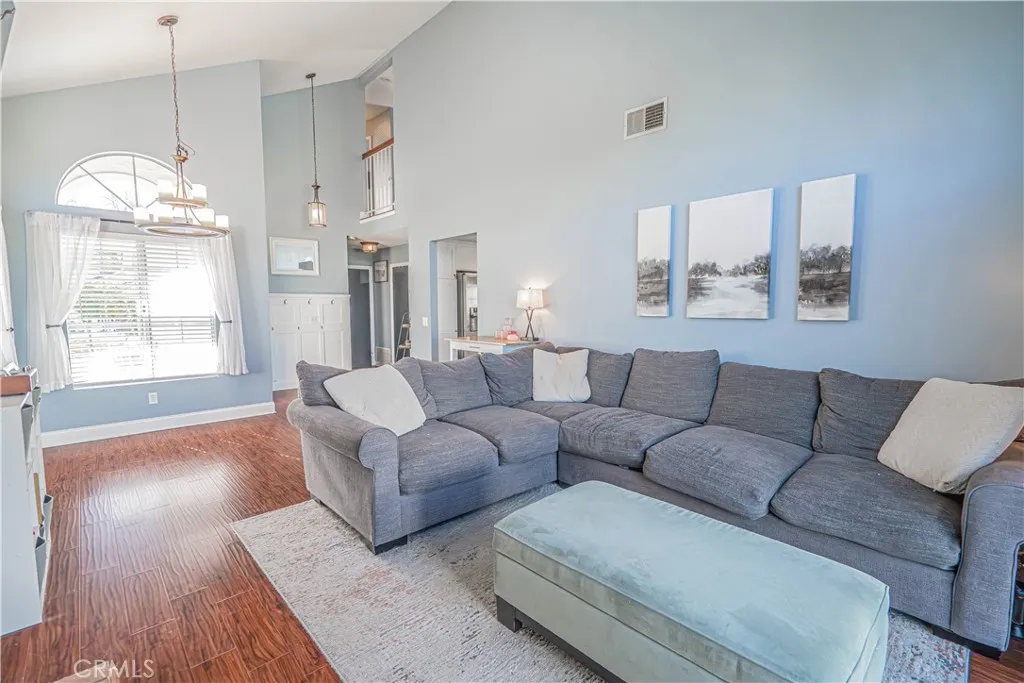 Home Is Where The Heart Is with this beautifully upgraded 3-bedroom home situated on a spacious corner lot in Santa Clarita. From the moment you walk through the front door, youre greeted by a warm and inviting open floor plan featuring high ceilings, upgraded flooring, and abundant natural light throughout. The millwork entry offers a functional drop zone with space for backpacks, coats, and everyday essentials. The living room is a true focal point, showcasing a cozy fireplace, high ceilings, and stunning floors, all while overlooking the backyard, perfect for both relaxing and entertaining. The upgraded kitchen is thoughtfully designed with stainless steel appliances, ample cabinetry, a center island, and an open layout that flows seamlessly into the family room. The family room features sliding glass doors that lead directly to the backyard, creating an effortless indoor-outdoor connection. Notable upgrades include upgraded lighting, flooring, baseboards, and vinyl fencing. The spacious primary suite offers high ceilings and an ensuite bathroom with dual sinks. Two additional bedrooms provide flexibility for family, guests, or a home office. Additional highlights include a two-car garage with direct access and a layout that balances comfort, functionality, and style. The community of Santa Clarita offers endless recreation, scenic hiking and biking trails, shopping, dining, and convenient freeway access for commuters. Dont miss the opportunity to own this thoughtfully upgraded home offering comfort, charm, and a desirable location.