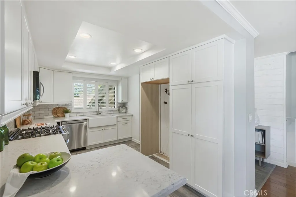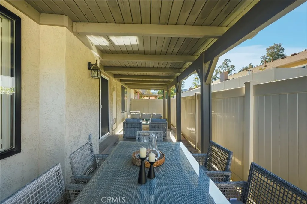 This is the one everyone in Scenic Hills has been waiting for. Immaculately maintained and intentionally redesigned, this corner-unit townhome is being introduced as the hottest, best-looking home currently available in the community and it earns that title at every turn. With 2 bedrooms, 2 bathrooms, two airy covered patios, and a direct-access two-car garage, the layout lives larger than its 1,268 square feet and delivers flexibility you rarely find here. The heart of the home is the fully remodeled kitchen, opened up with purpose and designed for both beauty and function. New cabinetry with smart internal storage features maximizes every inch, while quartz countertops, a farmhouse sink, double oven range, and built-in microwave elevate the space into something truly special. As a corner unit, this home enjoys something most others simply dont, additional windows, enhanced natural light, and open front and side yard space that creates a sense of privacy and breathing room. French doors extend the living space outdoors to two covered patios, perfect for morning coffee, evening wine, or hosting friends. Custom shutters, abundant storage throughout, and thoughtful details reinforce how carefully this home has been cared for. Behind the garage, a bonus space offers endless possibilities, ideal for a home gym, craft studio, man cave, or organized storage, a rare and valuable feature. All of this sits within the gated Scenic Hills community, offering a private 9-hole golf course, pool, spa, gym, tennis courts, clubhouse, and walking trails, all just minutes from shopping, dinin