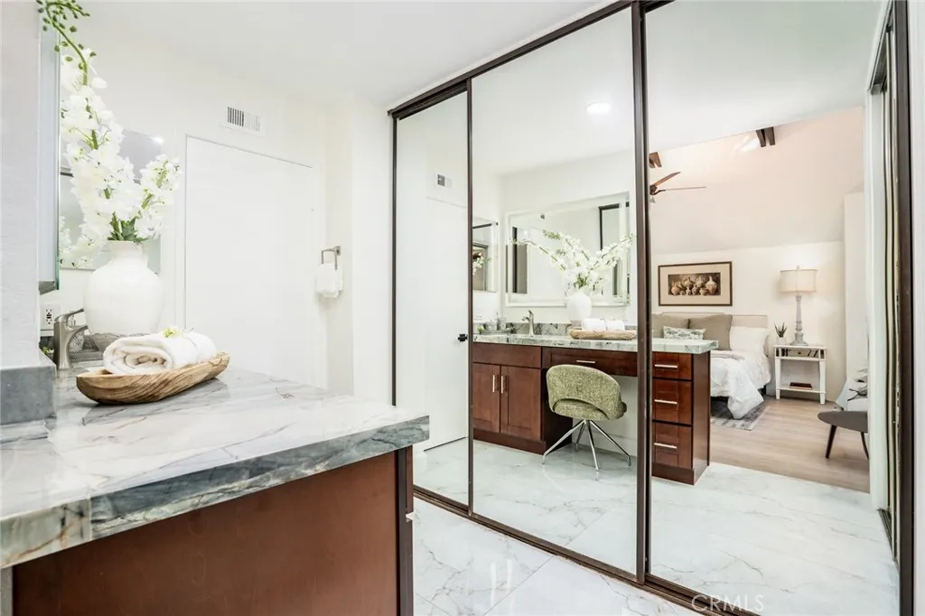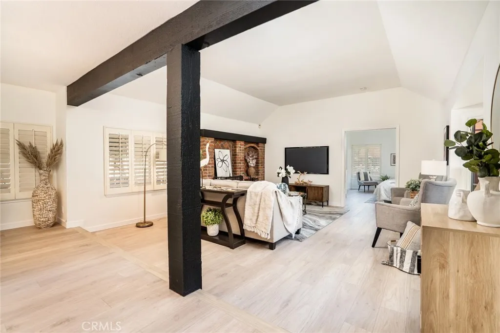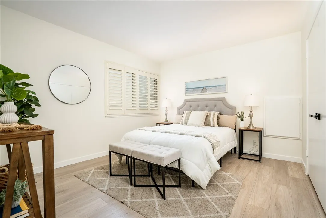 THERE'S NO PLACE LIKE HOME!!! Finally, a fully detached single family residence in Downtown HB at a very, very affordable price. This beach-chic meets coastal modern home with 4 bedrooms + 2.5 bath home + 2 car garage offers 1,825 sqft. of open-flowing living area on a generous 3,300 sqft. lot w/fenced front yard and large private patio. The longtime, loving Owner has just installed gorgeous laminate flooring, painted the interior, and updated fixtures & hardware throughout. This home features a very rare, huge downstairs primary bedroom w/beamed & vaulted ceilings + ceiling fan that will easily accommodate all of your large bedroom furniture. The ensuite primary bath was recently remodeled using the finest materials and boasts a highly upgraded walk-in shower. The living room has a spectacular brick fireplace and large garden bay window. There are 3 spacious bedrooms upstairs that all have large closets and plantation shutters. The kitchen features granite counters, lots of cabinetry & pantry space, and a full suite of appliances. Additional upgrades include dual pane windows, plantation shutters, and an open tread staircase. There's even a full-size laundry downstairs that offers both gas and electric dryer hookups. You'll enjoy year round balmy breezes in your private rear patio w/brick hardscape and covered patio. The detached 2 car garage w/garage door opener & rollup door offers perfect parking for your cars and additional storage areas. This home has untapped value and potential by creating an ADU with no need for exterior construction or expansion. You have top rate
