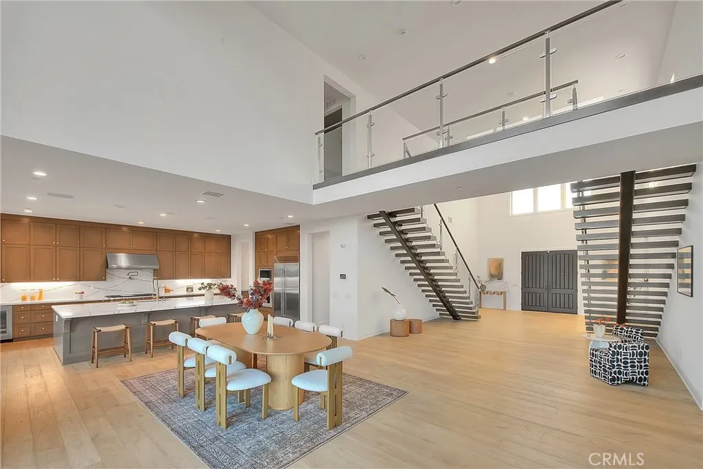 Rare Toll Brothers Pacific Italiente residenceone of the most sought-after floor plans in Westcliffelocated behind the guard gates of Westcliffe, one of Porter Ranchs most exclusive luxury communities. Completed in 2024, this contemporary Craftsman estate offers 5,567 sq ft of sophisticated living with 5 bedrooms, 5.5 bathrooms, a spacious loft, private office, and a 3-car garage, all set on an oversized, flat premium lot. A long private driveway creates a true estate-style arrival, providing exceptional privacy, flexible guest parking, and an immediate sense of distinction. An oversized front yard enhances curb appeal and delivers a feeling of space uncommon in newer luxury tracts. Elevated outlooks provide partial city, valley, and mountain view moments, while the homes west-facing orientation offers pleasant afternoon shade for comfortable outdoor enjoyment throughout the day. Inside, a dramatic foyer showcases dual floating staircases, setting the tone for the homes architectural presence. The expansive great room features double-height ceilings and floor-to-ceiling windows, seamlessly connecting indoor and outdoor living while filling the home with natural light. The designer chefs kitchen is anchored by a premium Wolf appliance suite with Sub-Zero refrigeration, custom marble countertops and backsplash, an oversized center island, walk-in pantry, and curated high-end finishes elevated above builder-standard selections. Upgraded European Oak hardwood flooring throughout delivers a clean, modern, move-in-ready aesthetic. The primary suite serves as a private retreat, of