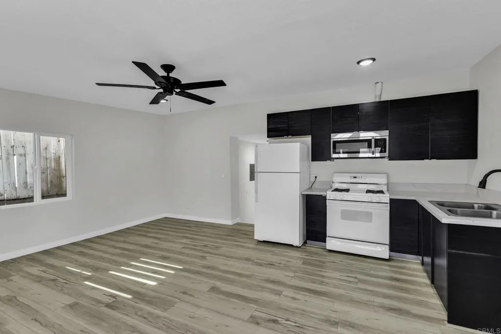 Beautifully renovated 2-bedroom, 1-bath unit in the heart of National City, freshly painted and ready for immediate move-in. This charming home features a modern open-concept kitchen, a renovated bathroom, a mini-split system for cooling, and a private patio. The primary bedroom includes a walk-in closet, and both bedrooms are on lower level, creating a unique split-level layout. Please note that access to the unit requires stairs and is not wheelchair accessible. Tenant is responsible for all utilities. Parking is street only; the driveway is reserved exclusively for the front/main house. The entry area and front patio are shared common areas with the other units on the property. No pets allowed. Conveniently located near freeways 5 and 54, shopping centers, schools, and much more. A great opportunity to live in a fully refreshed unit in a central, accessible neighborhood.