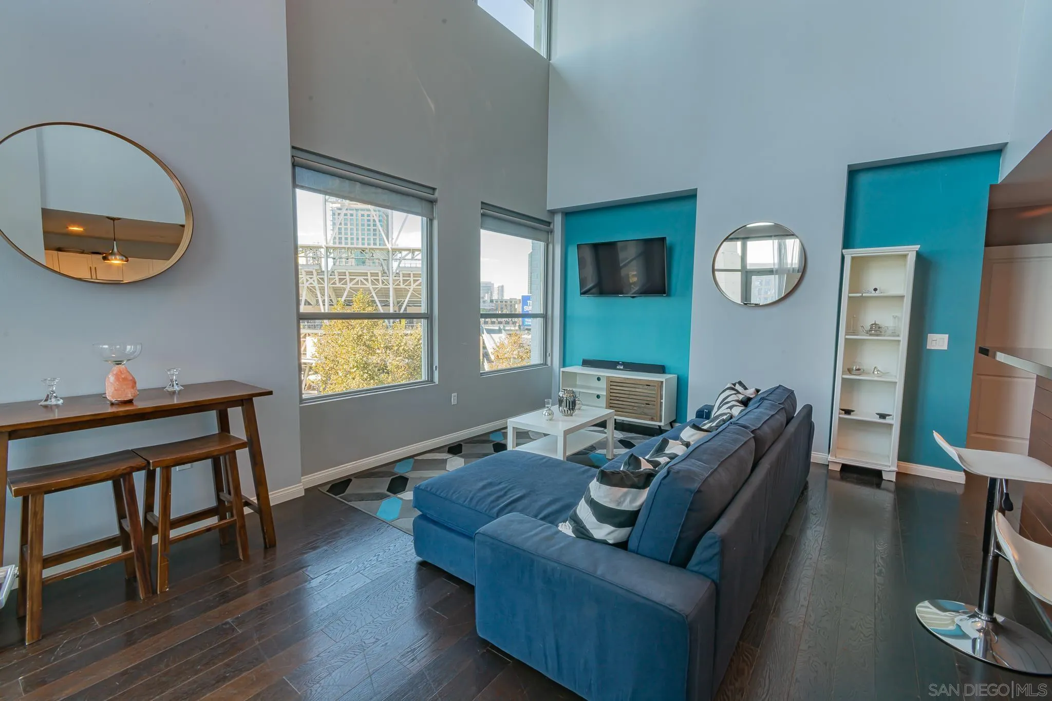 Experience elevated urban living in this exceptional top-floor corner penthouse located in the prestigious Park Villa’s building in East Village. This fully furnished 2-bedroom, 2-bath residence offers 1,101 sq. ft. of refined modern comfort enhanced by cathedral ceilings, expansive windows, and tasteful high-end finishes throughout. The open layout showcases dramatic natural light and panoramic views spanning the San Diego Bay, Coronado Bridge, and Petco Park, creating a rare blend of luxury, comfort, and downtown vibrancy. Designed with both style and functionality, the residence features generously sized bedrooms, two beautifully appointed full bathrooms, and a seamless flow ideal for entertaining or quiet relaxation. This penthouse is perfectly complemented by premium community amenities, including a fully equipped state-of-the-art fitness center, 24/7 concierge service, and an elegant clubhouse/meeting lounge complete with a pool table, full kitchen, and multiple TVs. A standout opportunity to rent a sophisticated, turnkey home in one of East Village’s most desirable boutique buildings.
