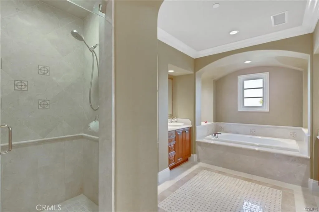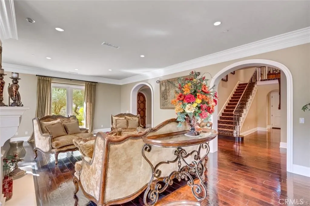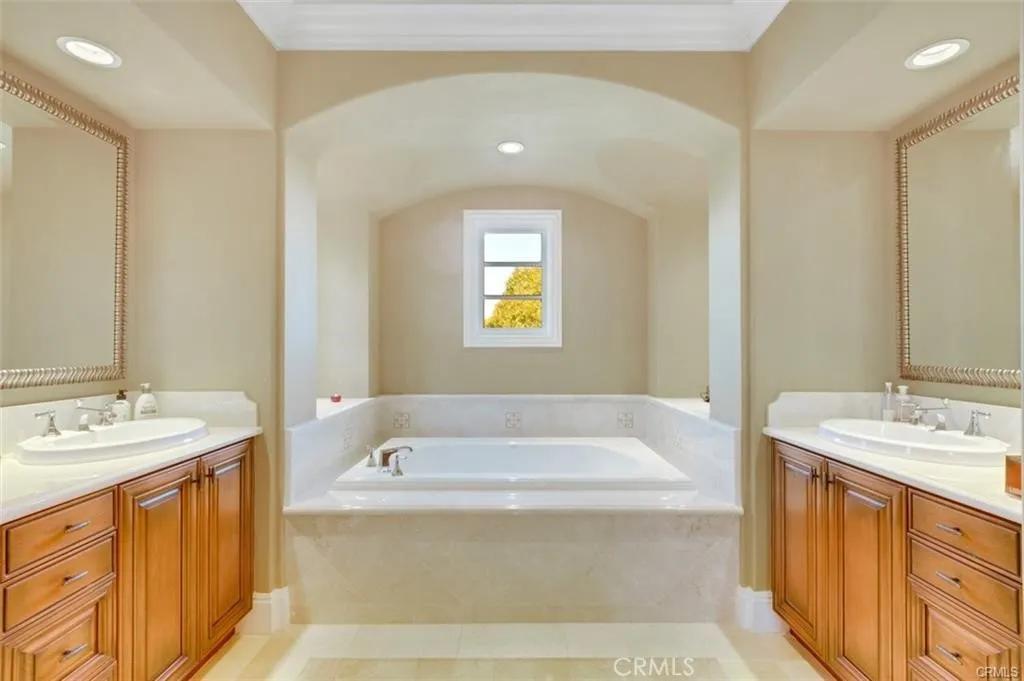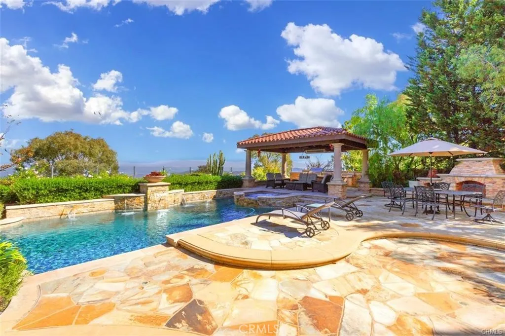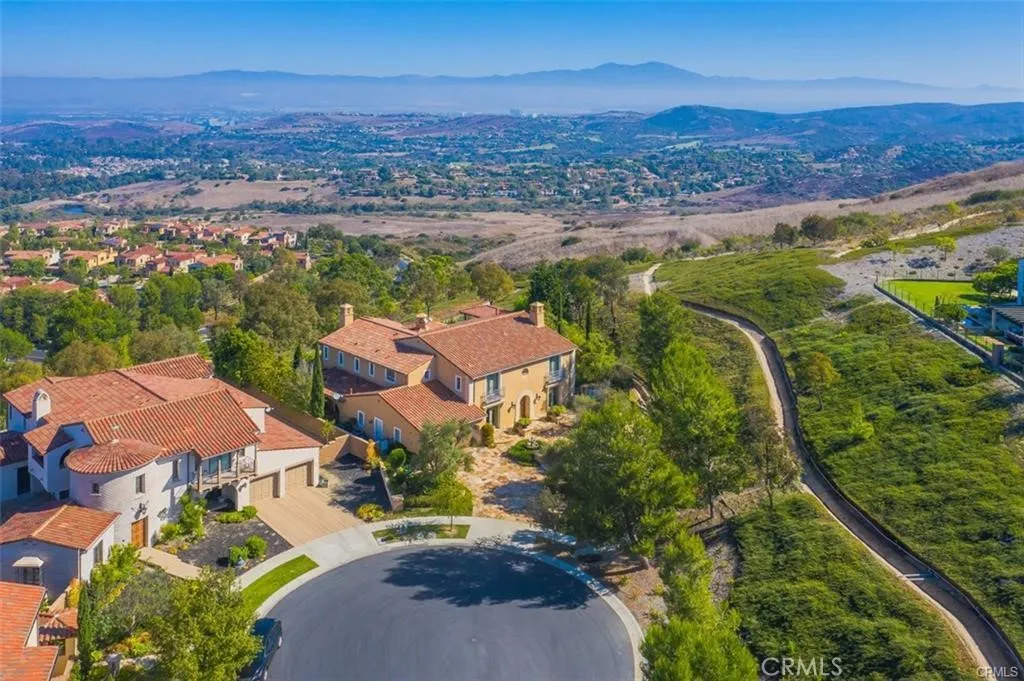 This is one of the finest locations and most stunning estates in the prestigious, guard-gated Turtle Ridge community. This exceptional property boasts breathtaking panoramic views stretching from sparkling city lights to Shady Canyon, set on a premium pie-shaped lot at the end of a quiet cul-de-sac. Every aspect of the home reflects uncompromising attention to detail, featuring unique materials and superior craftsmanship inside and out. The residence offers 5 bedrooms, 5.5 bathrooms, plus an office, a library, a media room, and additional bonus living spaces. Highlights include an expansive formal dining room and breakfast nook, along with a gourmet kitchen featuring an oversized fan-shaped center island, dual built-in refrigerators, and a wine cooler. Finishes include marble, granite, and hardwood flooring, plantation wood shutters, custom mirrors, imported drapery, crown moldings, European-style cabinetry, and French doors. A 4-car attached garage with epoxy flooring completes the interior amenities. The resort-style landscaping is thoughtfully designed for both relaxation and entertaining, showcasing a fully automated pool and spa, oversized gazebo, outdoor fireplace, fire pit, and extensive natural flagstone throughout the yard. Ideally located near award-winning Vista Verde K-8, renowned University High School, and Sage Hill Private School. Residents also enjoy access to exceptional community amenities including two resort-style pools, spas, cabanas, playgrounds, a clubhouse, a theater, and scenic trails. Homes like this are seldom available. Act before the opportunity