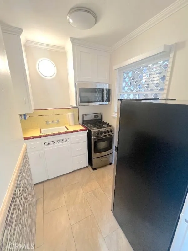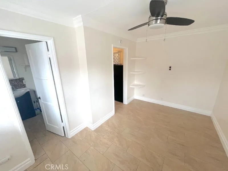 THIS CHARMING STUDIO IS SITUATED IN AN OLD-SCHOOL EUROPEAN STYLE BUILDING NESTLED IN LAGUNA JUST STEPS FROM THE BEACH DOWNTOWN SHOPS & RESTAURANTS. The light colored tile flooring and window provide ample natural light, creating a bright and inviting atmosphere. The ceiling fan helps keep the space cool and comfortable. The bathroom features a newer vanity, attractive tiled accents on the wall, a stall shower, and a linen closet for added convenience. In the kitchen, you'll find stainless steel appliances, including a gas range, an over-the-range microwave, and a refrigerator to meet all your culinary needs. The main living space measures 8' x 13'. The building boasts incredible grounds and community courtyards, providing a serene sanctuary to relax and unwind. The building is privately gated, ensuring privacy and security. Overall, this studio is the perfect little getaway for anyone who enjoys the beach. (Laundry on-site, not in unit)