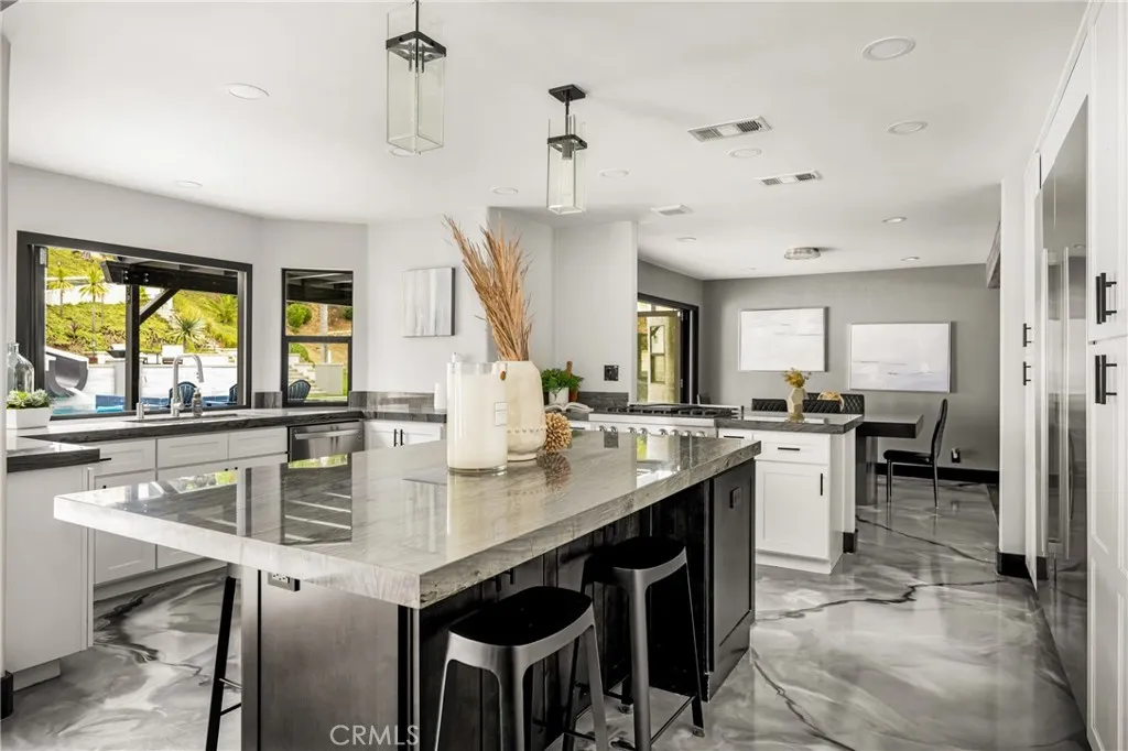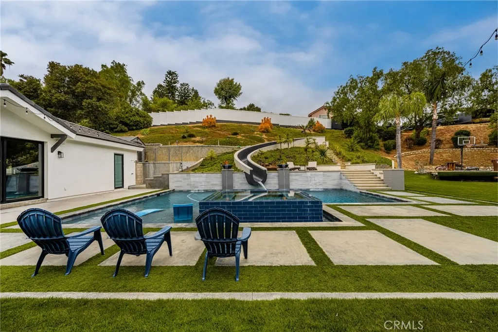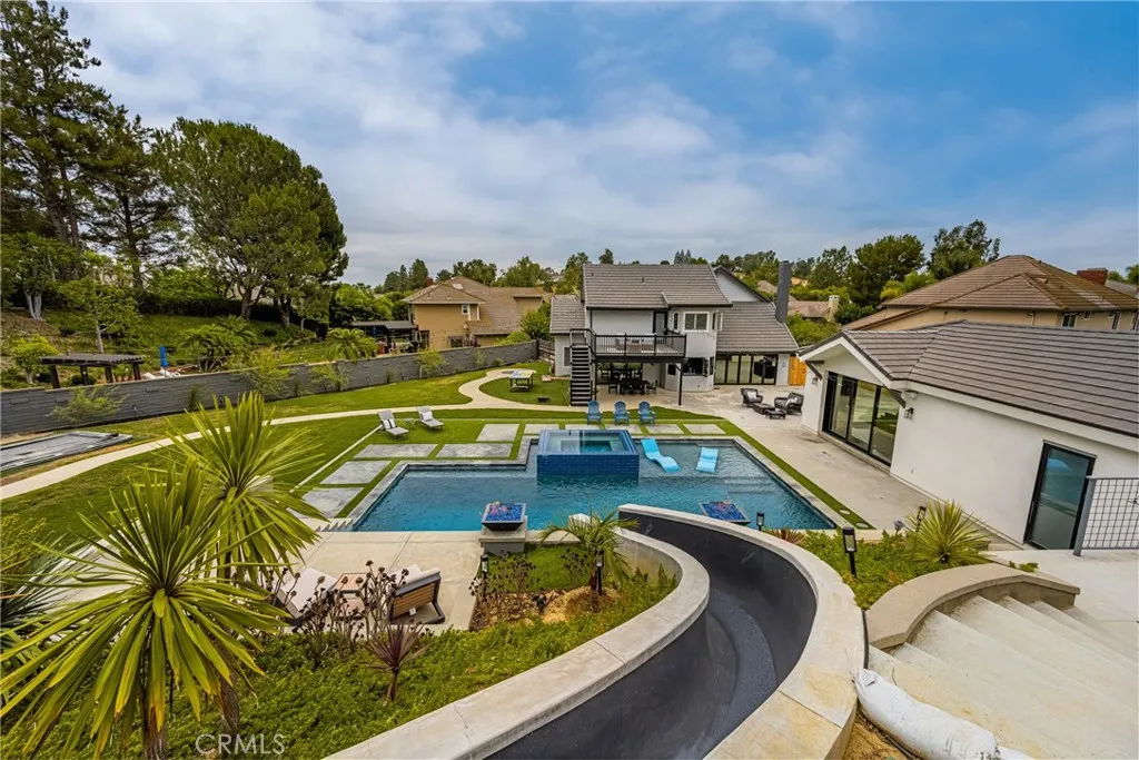 Stunning Turnkey Entertainers Dream Home with Designer Upgrades Throughout!! Welcome to this impeccably upgraded cul-de-sac residence, featuring a permitted 1,000 sq. ft. guest house with a full kitchen and full bathroom-perfect for guests, entertaining, or multi-generational living. Guest house is included in the main home square footage. The main home showcases a fully remodeled chefs kitchen with a large island, custom fold-out window, ZLINE 6-burner stove with griddle, and a Sub Zero refrigerator. Enjoy seamless indoor-outdoor living with custom La Cantina accordion doors, custom built-in Mont Alpi BBQ station, and a backyard oasis like no other- complete with a custom pool/spa, Baja shelf, 75 ft water slide, water/fire features, new lighting, and an outdoor shower. Recent upgrades include: New roof, owned solar, PEX repipe, and new concrete driveway and patios. Dual zone A/C, newer furnace, whole house fan, and Culligan water filtration system. Remodeled bathrooms and laundry room, recessed lighting, epoxy and hardwood flooring throughout. Custom built-ins in the office loft and living room. Newer smooth texture interior/exterior paint, custom vinyl fencing and wood gates. New lighting fixtures, keyless entry front door, Ring Doorbell, and closet organizers. Custom shutters, remodeled fireplace with built-ins, and deck off the primary suite with direct patio access. 2-3 RV parking spaces with GATED private access at top back of property, built-in garage attic storage, retaining walls, and automated irrigation system. Perfectly blending luxury, function and fun, this ho