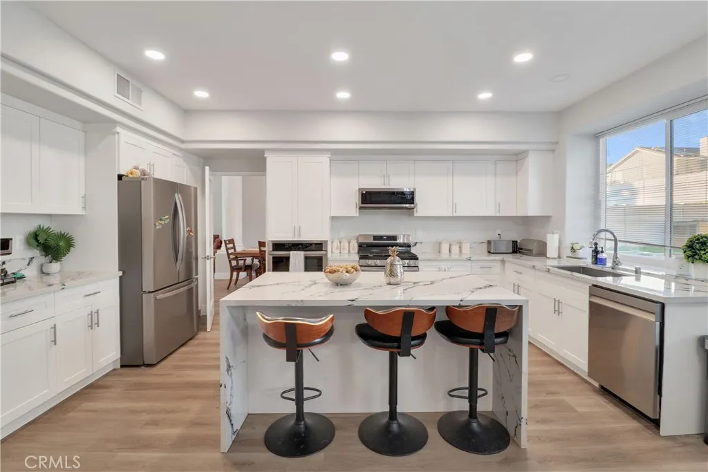 Welcome to this stunning, fully renovated, move-in-ready home offering the perfect combination of modern design, comfort, and quality craftsmanship. This super nice 4-bedroom, 2.5-bathroom residence has been completely updated from top to bottom and is ideal for buyers looking for a turn-key property with high-end finishes throughout. As you enter, youll immediately notice the bright and open layout, enhanced by all-new recessed lighting, fresh interior paint, and beautiful waterproof flooring that flows seamlessly throughout the home. New vinyl windows bring in abundant natural light while improving energy efficiency, and all new interior doors add a clean, modern touch. The heart of the home is the gorgeous, brand-new kitchen, thoughtfully designed for both everyday living and entertaining. It features elegant quartz countertops, a stunning waterfall island, new custom kitchen cabinetry, and a complete Samsung appliance package. The open concept kitchen connects perfectly with the living and dining areas, creating an inviting space for gatherings. Solar panels and battery have been installed to lower electric expense.