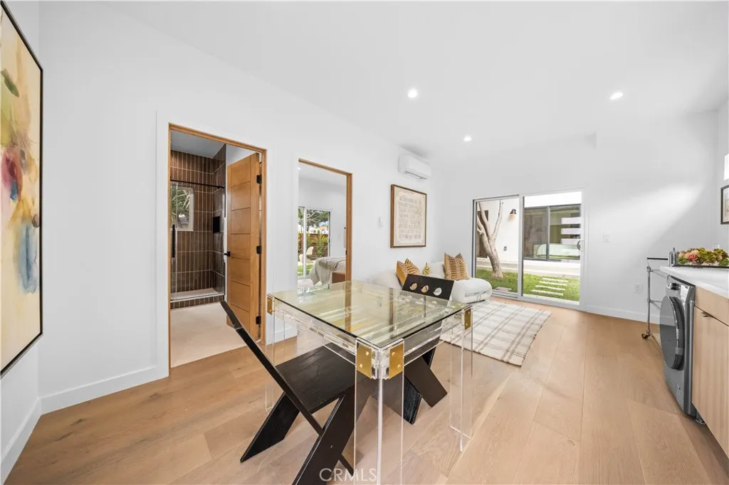 An extraordinary opportunity in one of the Westsides most sought-after neighborhoods, this timeless corner-lot residence has been masterfully renovated and thoughtfully expanded. The main home offers 3 bedrooms and 1 designer bath, filled with natural light through expansive windows and framed by wide-plank oak floors. An open, free-flowing layout connects the living and dining areas to a chefs kitchen with custom cabinetry, quartz surfaces, and premium stainless steel appliances. Complementing the main home, a newly constructed 383 sq ft Accessory Dwelling Unit (ADU) stands as a fully independent residence with its own private entrance. Perfect for multi-generational living, a guest retreat, or income-producing rental, the ADU adds rare versatility and long-term value. Outdoors, curated landscaping blends modern hardscape, a fire-pit lounge, and mature greenery to create an inviting retreat. A six-car parking capacity, including an extra-wide driveway, ensures convenience for residents and guests alike. The location is unrivaledjust 2.5 miles to UCLA, 5 miles to Santa Monica State Beach, minutes to Century City, and one block from the highly regarded Westwood Charter Elementary School. Adu can be sub-leased to other tenants.