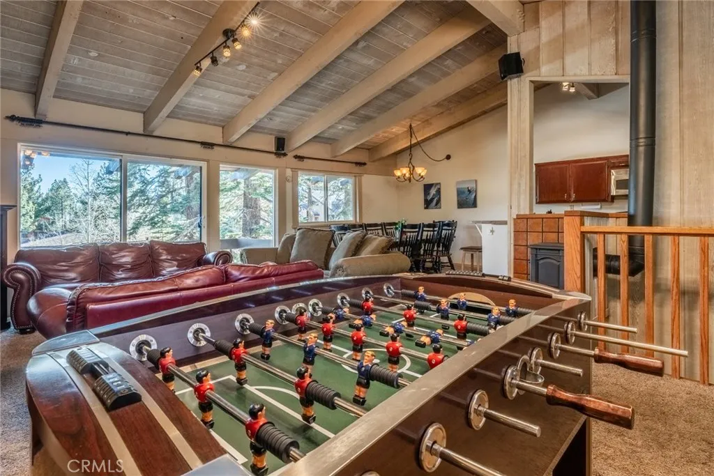 Mammoth Estates Condominiums: Your Perfect Mammoth Lakes Ski & Mountain Retreat. Welcome to your ideal home or ski condo in Mammoth Lakes! Nestled in a quiet, private neighborhood off the main road on Horseshoe Drive, this inviting Mammoth residence offers all the space and convenience you want in a mountain getaway. Per public records, this comfortable home features ~1,493 sq ft with 3 bedrooms and 2 bathroomsthoughtfully arranged for family, friends, and memorable moments. Step inside this cozy home and feel instantly at home in the bright, open main living area. The well-appointed kitchen features stainless steel appliances, a gas range, generous cabinet and counter space, and seating at the breakfast bar. Gather at the dining table for eight, enjoy games or conversation in the foosball area, or cozy up in front of the clean-burning propane fireplace after a day in the Sierras. A covered balcony with mountain views is perfect for grilling and relaxation. The main level includes a shared full bathroom and a comfortable bedroom with a queen bed. Downstairs youll find two additional bedroomsa king-bedroom and a bunk room featuring two sets of bunk beds that sleep up to fourideal for grown guests or kids alike. A locked owners utility and bonus area (not included in the square footage) provides a laundry space, half bath, and room for an office or beds with adjacent large gear storage for skis, bikes, golf clubs, and outdoor equipment. Two large water heaters ensure everyone enjoys hot showers. A convenient gear closet at the entry helps keep everything organized and houses