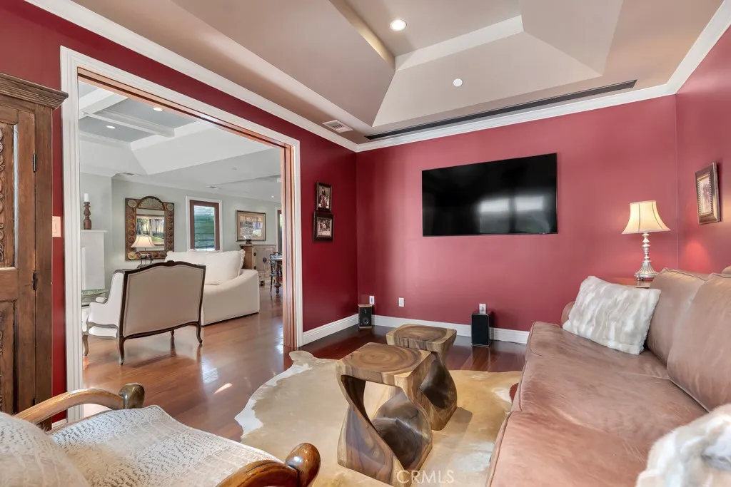 Experience the perfect harmony of luxury and tranquility in this stunning 3-bedroom, 2-bathroom home situated on an elite street in Woodland Hills-South. Spanning 1,719 sqft of meticulously and sophisticatedly designed living space, this home is an entertainers dream. Step inside to find an open-concept floor plan illuminated by natural light from strategically placed, soaring vaulted ceilings and high end elegant finishes throughout. The gourmet chefs kitchen is a masterpiece, featuring premium stone countertops, white shaker cabinetry, and professional-grade stainless steel appliances The living area seamlessly transitions to the outdoors through massive glass doors, leading you to a private sprawling backyard.The primary bedroom serves as a true escape, featuring high ceilings and sliding doors that open directly to the crisp morning air of the backyard. The primary bath feels like a high-end spa, boasting a soaking tub and a rainfall shower bathed in natural light.Relax under the expansive covered patio, complete with an outdoor fireplace and skylights, overlooking magnificent lush landscaping in the backyard. Whether hosting a summer soire or enjoying a quiet evening by the fire, this space offers unparalleled privacy and comfort. Located just minutes from the Santa Monica Mountain trails and the upscale dining of Ventura Blvd, this is South of the Blvd luxurious family living at its finest.
