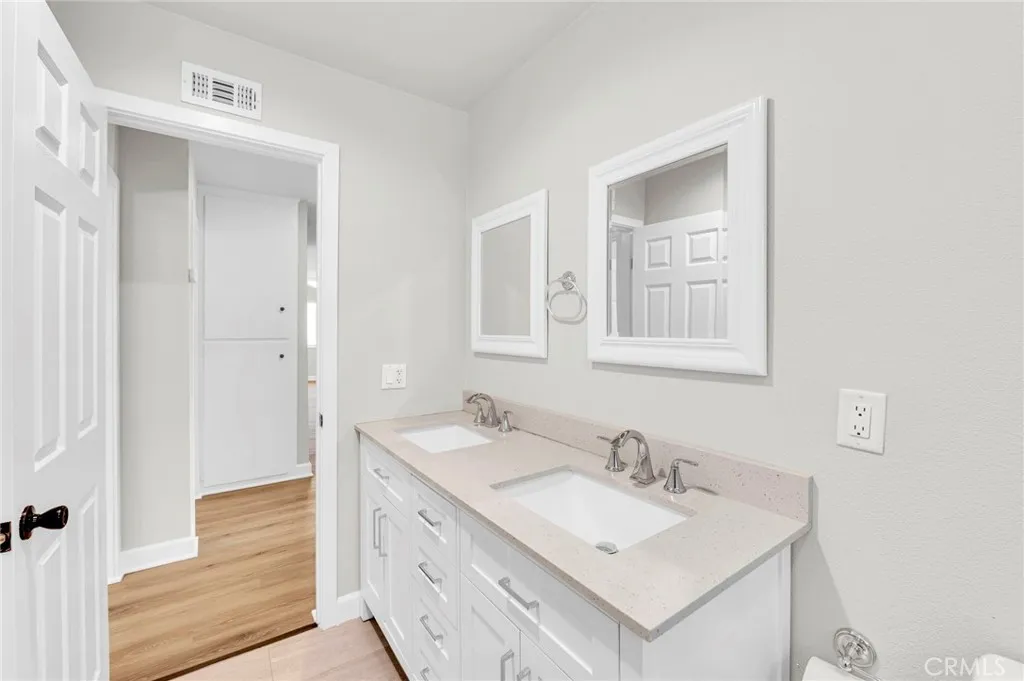 Welcome to this charming corner-lot home in the heart of peaceful Santa Clarita! From the moment you arrive, youll be greeted by a vibrant, lush green lawn and a home that shines with upgrades inside and out. Step into the living room featuring new flooring, flowing seamlessly into the fully renovated kitchen. The kitchen boasts stylish white shaker cabinets, stainless steel appliances, a crisp subway tile backsplash, newer countertops, and updated plumbing fixturesperfect for the modern chef. A spacious adjoining dining area makes hosting friends and family a breeze. Both bathrooms have been tastefully upgraded with classic vanities, tile flooring, re-tiled showers, and newer plumbing and lighting fixtures. The bedrooms are bright and airy with ample closet space, plush carpeting, and plenty of natural light. This home is loaded with upgrades, including **newly painted interior, updated windows, newer AC and heating units, an upgraded roof, updated rain gutters, upgraded electrical panel, backyard water pump, and a full security system surrounding the property** for added peace of mind. Outside, enjoy your private oasiscomplete with a pergola ideal for outdoor dining, entertaining, or relaxing in the sunshine. Surrounded by tall trees, the backyard offers ample space for gardening or colorful flower beds. Additional highlights include an attached two-car garage and a prime location close to Central Park, hiking trails, dining, entertainment, and more. This Santa Clarita gem truly has it alldont miss your chance to make it yours!