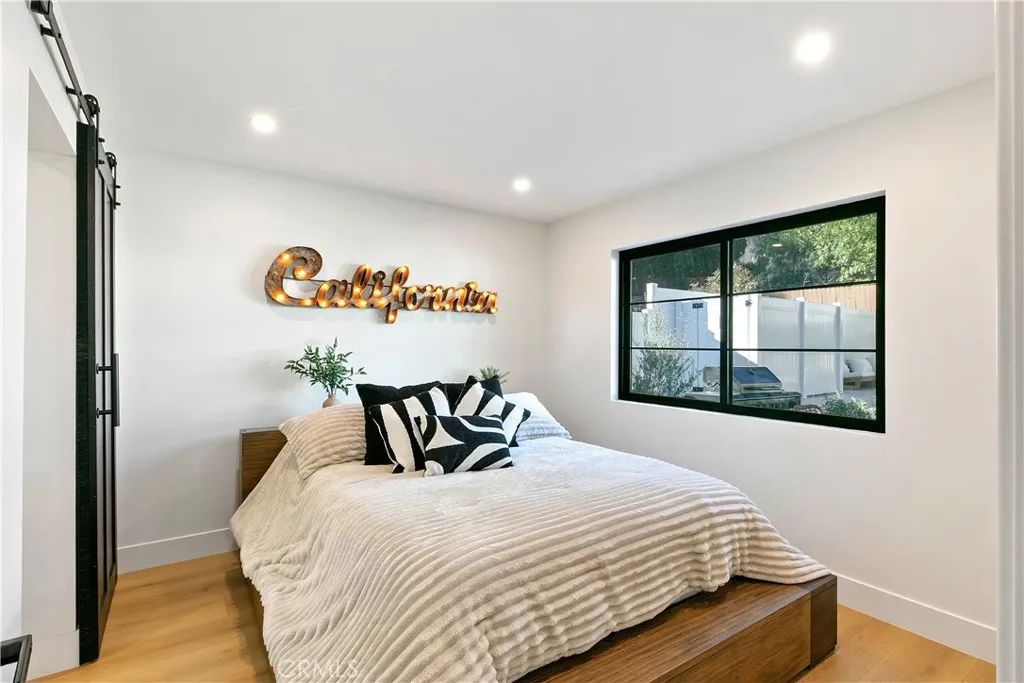 This custom Woodland Hills haven has been thoroughly and extensively reimagined and reinvented. With 5 bedrooms, 5.5 bathrooms, and a stunning home office, this residence boasts living space. Every area has been thoughtfully designed by its creator resulting in vibes typically seen in the highest end of finishes and design in neighborhoods like Malibu or Brentwood. The flawless layout is ideal, from the functional upscale kitchen boasting Thermador appliances and large walk-in pantry, to the expansive master retreat inclusive of a spa-like bathroom, walk-in closets, built-in vanity and spacious balcony. With statements of Roman Clay walls throughout, this warm residence has it all! The functionality and comfort proceeds with 5 ensuite bedrooms, two of which are situated on the 1st level. Stepping outdoors to the tranquil and alluring backyard which is meticulously landscaped and lit, you will encounter a brand new pool and spa with large baja area surrounded by beautiful potted olive trees, multiple seating areas, and a large covered high ceiling cabana, perfect to watch the games of the week or for outdoor movie nights. There is ample storage space with a designated storage facility in the backyard, and multiple custom linen and coat closets throughout the home. Additional features include drive in/drive out driveway gates, 3 fireplaces and epoxy floor garage. This Woodland Hills gem is delightfully situated south of Ventura Blvd. yet close to all the conveniences and essentials. .. .Whole Foods, Trader Joes, The Village, Westfield Topanga, The Commons at Calabasas and a p