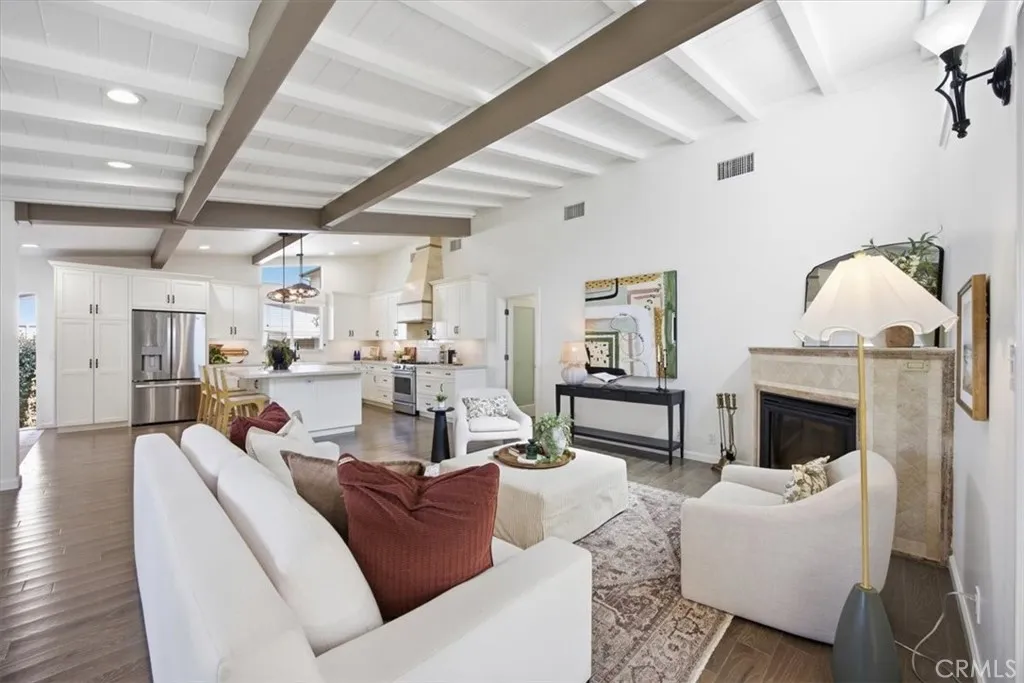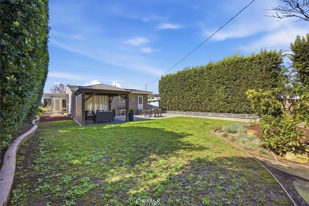 Nestled on a quiet cul-de-sac in highly desirable South Torrance, this beautifully updated home sits on an expansive 9,508 square foot lot, offering exceptional outdoor space rarely found in the area. Fresh interior paint and thoughtfully refreshed grounds create a crisp, move-in-ready feel with standout curb appeal. Enter through the charming arbor into a spacious front yard and welcoming front porch, framed by lush landscaping and inviting exterior lighting. Inside, the open concept living room impresses with vaulted ceilings, rich hardwood floors, and a striking fireplace that anchors the space. Designed for both comfort and entertaining, the custom kitchen features an impressive 6 by 7 foot center island, stainless steel appliances, a country-style sink, quartz countertops, custom cabinetry, and a statement hood, blending timeless style with everyday functionality. Conveniently located just off the kitchen, the finished, oversized garage offers epoxy floors, side-by-side laundry, and is wired for television, providing flexible bonus space. All bedrooms and bathrooms are privately situated down the hall. The primary suite also provides access to the backyard, adding an additional connection to the outdoor space and enhancing the homes indoor-outdoor flow. Just off the living room, a sun-filled enclosed sunroom with elegant French doors opens to the true highlight of the property, the expansive backyard oasis. The newly landscaped rear grounds take full advantage of the generous 9,508 square foot lot, offering incredible versatility for entertaining and relaxation. A gaze