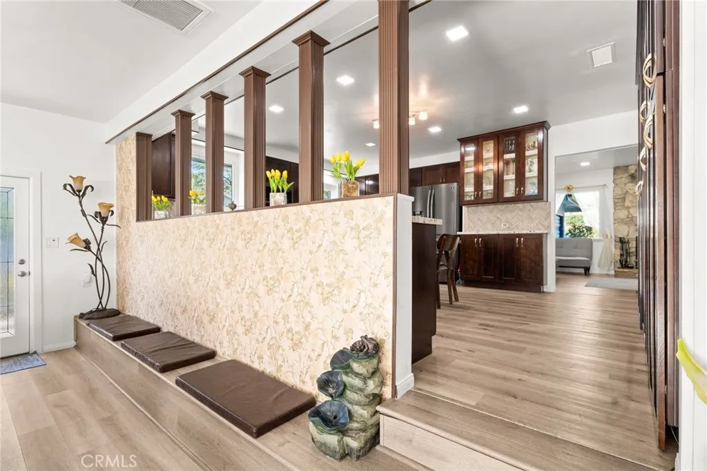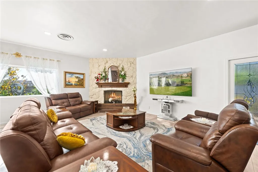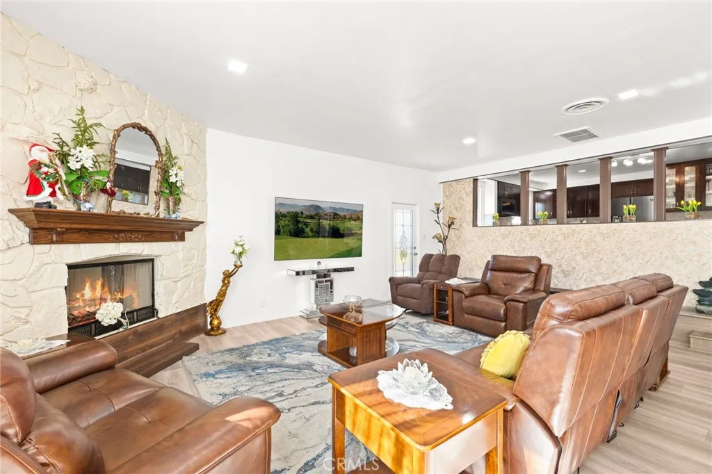 Welcome to this beautifully remodeled single-story home located in the highly sought-after city of Bradbury, where comfort, privacy, and community come together. This 4-bedroom, 2-bathroom residence offers a bright, open layout designed for modern family living and effortless entertaining. The home features a welcoming living room with a classic fireplace as well as a spacious family room with a second fireplace, creating multiple areas to gather and relax. The family room flows into a designated dining area and includes a built-in wine rack, making it ideal for family dinners and special occasions. Just off the family room, a generously sized covered patio provides the perfect space to enjoy the outdoors year-round, whether relaxing or entertaining. The updated kitchen is equipped with granite countertops, ample prep space, and a modern electric range, blending style with everyday functionality. Recent upgrades include updated electrical and plumbing systems and a newer air conditioning system, offering peace of mind and year-round comfort. Outside, the thoughtfully landscaped yard is surrounded by mature trees, offering a sense of tranquility and an abundance of local wildlifecreating a true retreat-like setting. Located in a quiet, family-friendly neighborhood close to top-rated schools, shopping, and dining, with convenient access to the 210 and 605 freeways, this Bradbury home delivers the perfect balance of serene living and everyday convenience. This is a must see!