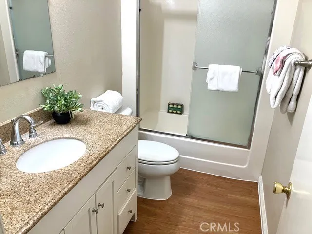 With a view of Saddleback Mountains this single level home features 3 bedrooms, 2 bathrooms, and includes a detached 2 car garage. All indoor flooring is easy to maintain from tile to laminate wood in the bedrooms. The tastefully updated kitchen features granite countertops and plenty of storage space. The very large private patio is perfect for relaxing. Play in the sun at the community pool or plan a day at the nearby park. Close to shopping, restaurants and town center, this home is minutes to the beach: a great location! Low tax rate, no Mello-Roos, plus VA and FHA financing are ok.