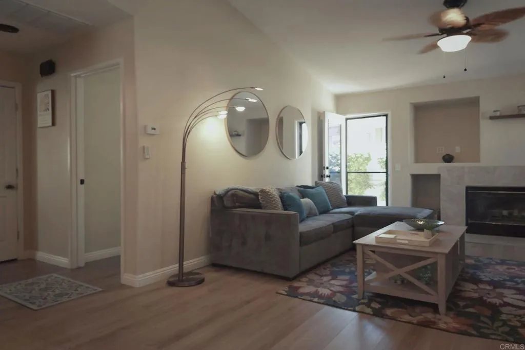 A rare, fully updated residence offering privacy in The Colonydesigned for easy, immediate living. This move-in ready home stands out as one of the most thoughtfully upgraded opportunities in the community, where everything is already done so you can simply unpack and begin your next chapter. Step inside to a bright, open layout where high ceilings and updated wood-look flooring create a clean, modern feel. The living and dining areas flow naturally together, anchored by a cozy fireplace and finished in soft, neutral tones. The kitchen has been refreshed with white cabinetry, granite countertops, a modern sink and fixtures, and newer appliancesincluding a new dishwasheroffering a space that feels both current and functional for everyday living or casual gatherings. The primary suite provides a comfortable retreat with vaulted ceilings, generous closet space, and natural light from south- and west-facing windows overlooking the garden. The en-suite bath features a custom stone tile walk-in shower. The second bedroom is bright and versatile, with built-in storage and direct access to the backyard through a sliding glass doorideal for guests, workspace, or flexible use. Outside, the fully fenced backyard is a standout, with mature landscaping creating a quiet, private setting rarely found at this price point. Multiple access points enhance both convenience and flow. Extensive updates include designer paint, recessed lighting, updated fixtures, newer washer and dryer, a recent roof tune-up with four-year roof certification, and an HVAC system upgraded within the last five years