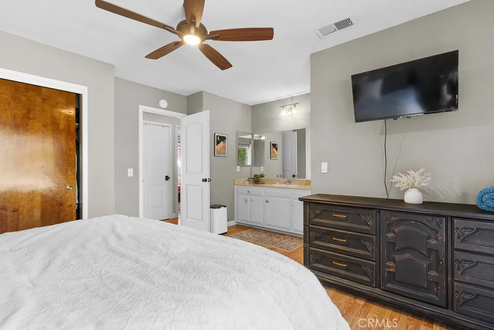 Enjoy the benefits of 21 solar panels, delivering energy efficiency and long-term savings in the highly desirable 24-hour guard-gated community of Canyon Lake. This charming and unique single-story home offers 3 bedrooms, 2 full bathrooms, and 1,576 sq ft of thoughtfully designed living space, all situated on a 7,405 sq ft lot. From the moment you arrive, youll appreciate the excellent curb appeal and distinctive layout, highlighted by a private side-entry front door that adds both character and privacy. Inside, the home is filled with natural light from numerous windows and skylights, creating a bright, open, and welcoming atmosphere. Laminate flooring flows throughout the living areas and bedrooms, while tile flooring in the kitchen and bathrooms provides durability and easy maintenance. The kitchen maintains its original appliances, cabinetry, and unique hardware, preserving the homes charm while opening directly to the dining areaperfect for everyday living and entertaining. The dining room flows seamlessly into the spacious family room, where a cozy fireplace creates an inviting setting for relaxing evenings and gatherings. Down the hallway, youll find three well-sized bedrooms, including the primary suite. The primary bathroom features dual sinks and a walk-in shower, and the primary bedroom includes a sliding glass door with direct access to the side and backyard. The outdoor space offers generous side-yard and backyard areas with an installed gazebo, providing the perfect spot for entertaining, relaxing, or enjoying Canyon Lakes beautiful weather. Canyon Lake is a p