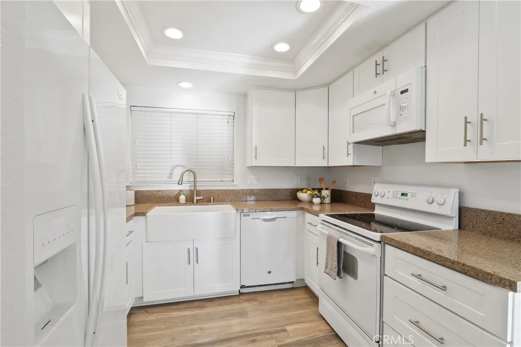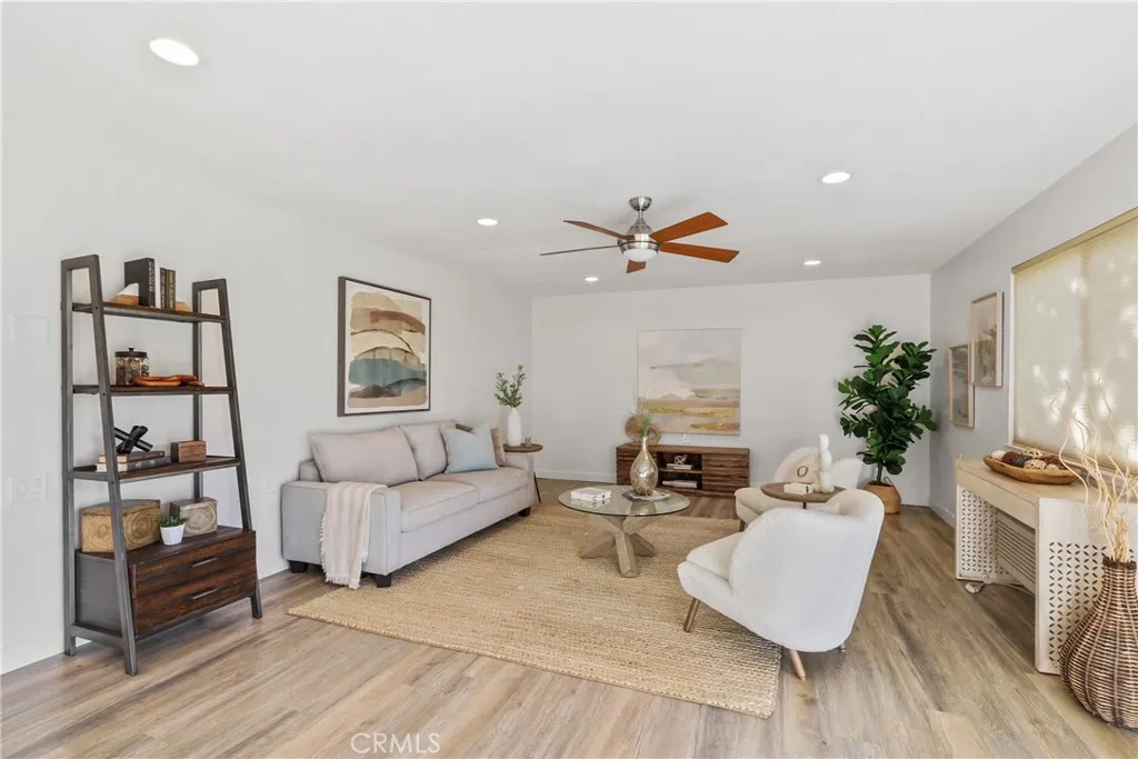 FABULOUS FOREVER GOLF COURSE VIEW! This upgraded end-unit home offers one of the most peaceful, quiet, and serene settings in all of Laguna Woodscomplete with a large private patio overlooking breathtaking, unobstructed golf course scenery. It truly doesnt get better than this! Inside, youll find beautifully updated features throughout, including laminate flooring, smooth ceilings, recessed lighting, and ceiling fans in every room and split system AC units. The stylish kitchen boasts quartz countertops and upgraded cabinetry, while both bathrooms feature tastefully upgraded tile showersthe primary bathroom with a walk-in designand a newer vanity in the hallway bath. This lovely home is move-in ready and sure to impress! Located within the renowned Laguna Woods Village, a premier 55+ community, residents enjoy an unmatched list of amenities: 27-hole golf course, 5 swimming pools, including one saltwater pool, 2 fitness centers, Woodworking shop, ceramics studio with kiln, art studio, and more. Equestrian center and abundant walking paths, 275+ social clubs, Free bus service to nearby markets and shopping, On-site restaurant and bar overlooking the golf courseperfect for patio dining with friends. Subterranean parking for one car plus a golf cart. All this, just 6 miles from world-famous Laguna Beach with easy access to freeways, grocery stores, and the best of Orange County living. Dont miss this wonderful propertyyou wont be disappointed!
