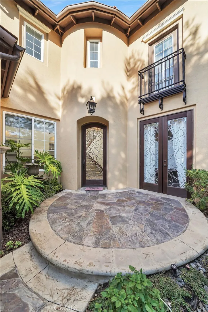 Beautifully maintained home in the prestigious gated community of Tesoro Villas in Newport Coast. Ideally situated at the end of a quiet cul-de-sac and just steps from a private walking path leading directly to award-winning Newport Coast Elementary School. This highly sought-after floor plan offers 3 generously sized bedrooms, 2.5 bathrooms, and an abundance of natural light throughout. The gourmet, highly upgraded kitchen features stunning quartzite countertops, stainless steel appliances, and a built-in breakfast nook. A custom center island opens seamlessly to the spacious family room, complete with a stone fireplace and bi-fold French doors that lead to a beautifully landscaped, private backyard perfect for indoor-outdoor living. An impressive living room showcases soaring ceilings and a cozy fireplace, while the formal dining room features French doors opening to a charming private courtyard, ideal for entertaining. A striking wrought-iron staircase leads to the upper level. Upstairs, the luxurious primary suite offers a serene retreat with French doors opening to a large private balcony. The elegant primary bathroom includes dual quartz vanities, a soaking tub, a marble walk-in shower, and dual walk-in closets. Residents enjoy resort-style amenities, including the Tesoro Villas pool and spa, along with access to the adjacent Coastal Canyon Club featuring a clubhouse, Olympic-size pool, spa, tot lot, tennis courts, and basketball courts.