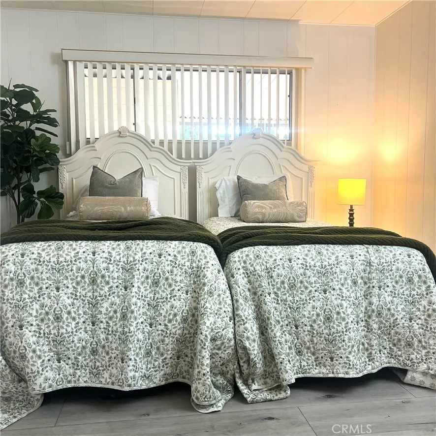Welcome to this beautifully maintained 2-bedroom, 2-bathroom double-wide manufactured home in the tranquil 55+ community of Forest Gardens. Spanning 1464 sq. ft, this inviting home features an open floor plan, perfect for comfortable living. Bright and spacious, ideal for everyday living. Enclosed and perfect for use as an office, sitting room, or craft/hobby room.Includes built-in shelves or a china cabinet, adding a touch of elegance. Features a Google Nest smart thermostat for optimal energy efficiency, along with reliable AC and heating. Covered carport for two vehicles, an outdoor shed/workshop, and plenty of external storage. Enjoy barbecue grill and seating area in the back with partial lake view. Conveniently located near the 405 and 5 freeways, and within walking distance to tennis courts, clubhouse, and a variety of community activities like bingo, dances, holiday parties, and more. Plus, enjoy the heated pool, hot tub, and workout gym.