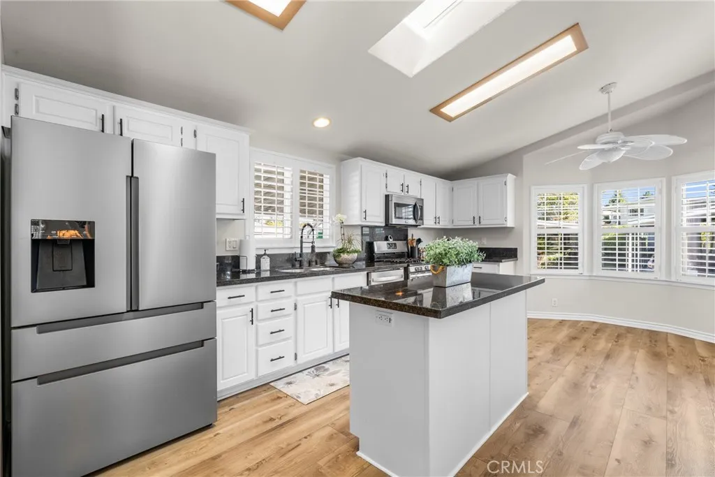 Welcome to your dream home! This charming 3 bedroom residence was built in 2005. It boasts high ceilings that create an airy and spacious atmosphere. The inviting kitchen features a beautiful bay window, granite countertops and a skylight, perfect for enjoying your morning coffee while basking in natural light. With generously sized bedrooms and two modern bathrooms, this home offers both comfort and privacy. Bedroom 3 is configured as a versatile den/office, providing an ideal space for remote work or relaxation. The convenient interior laundry room with sink adds to the functionality of this delightful property. Forest Gardens is a premier 55+ community offering a relatively low lease rate, amenities, activities and a location near the Irvine Spectrum. Dont miss the opportunity to make this bright, welcoming and lovingly-maintained home yours! Please note that a 750+ credit score is a firm requirement for park approval. See supplements for other application information.