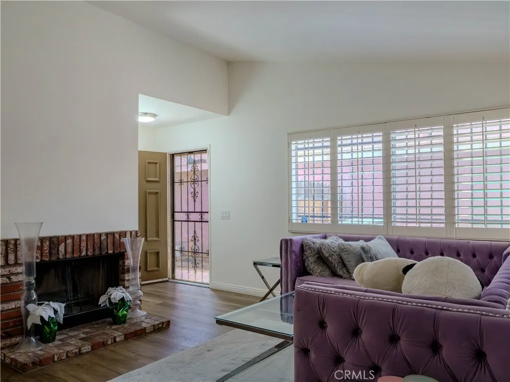 Charming single-story 2 bedroom, 2 bathroom home offering a bright and functional layout. The inviting living room features vaulted ceilings, a cozy fireplace, and plantation shutters that allow for abundant natural light. The kitchen includes stainless steel appliances, modern backsplash, and ample cabinetry, opening to the dining area and breakfast nook. Both bedrooms are spacious, including a primary suite with its own private bathroom and access to the backyard. Enjoy outdoor living under the covered patio and a generous backyard with room to relax, entertain, or customize. The front yard features low-maintenance artificial turf and drought-tolerant landscaping for great curb appeal and water savings. An oversized storage shed provides additional storage space. Ideal for first-time buyers, downsizers, or investors.