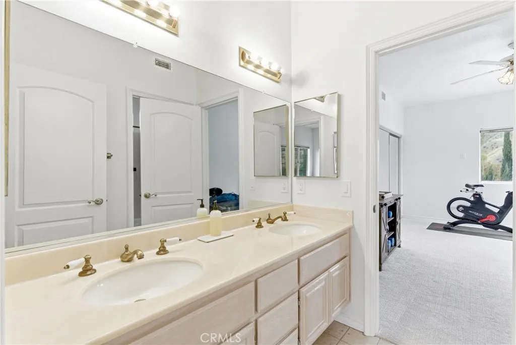 Nestled at the end of a cul-de-sac in Bryant Ranch, this gated estate offers a rare combination of privacy, space, and refined living on a generous 18,000 sq ft lot. Featuring a resort-style backyard, flexible living spaces across both levels, and top-rated schools just minutes away, this is a home built for both everyday comfort and year-round entertaining. A long, private-gated driveway welcomes you to the striking 5 bedroom, 4.5 bath residence. Custom wrought-iron double doors open to a soaring two-story foyer with a dramatic, sweeping staircase and chandelier. Formal living and dining rooms flow naturally to the outdoors. In the family room, a large brick hearth fireplace and built-in bar create a comfortable gathering space that connects to the kitchen and eat-in breakfast area, all overlooking the backyard. The main level also hosts a private home office featuring French doors to the exterior, a dedicated laundry room, and a full bedroom suite with en suite bath, ideal for guests or multigenerational living. Upstairs, the primary suite is a true retreat with vaulted ceilings, a sitting area, private fireplace, and coffee bar. The en suite bath delivers a spa-like experience with an oversized jacuzzi tub, walk-in double shower, dual vanities, and two walk-in closets. French doors open to an expansive deck overlooking the backyard and rolling hills beyond. Down the hall, a versatile upstairs living area also opens to the deck, with stairs leading directly to the pool and patio. A junior suite with its own en suite bath and two additional bedrooms sharing a Jack-and-Jill