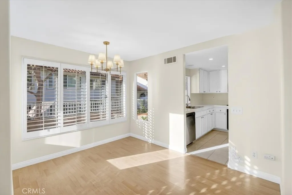 Beautiful two-story townhouse located in the highly desirable gated community of Village Niguel Gardens. This spacious home offers 3 bedrooms, 3 bathrooms, and a versatile bonus room/den that can easily function as a home office, guest space, or potential 4th bedroom. All main bedrooms are located upstairs, while the downstairs den is conveniently situated near a full bathroom, offering flexible living options. The primary suite features a large walk-in closet, an additional closet, and an ensuite bathroom with dual sinks. The interior has been freshly painted and features new laminate flooring throughout, creating a clean, move-in-ready feel. The spacious kitchen includes a pantry, a large window that brings in natural light, and a dining area that opens to the main living spaces. The living room offers a cozy fireplace and direct access to a private outdoor patio thats perfect for relaxing or entertaining while enjoying views of the nearby greenbelt. Additional highlights include an indoor laundry room with built-in cabinets and an attached two-car garage with built-in storage. Residents of Village Niguel Gardens enjoy resort-style amenities including two pools, two spas, tennis courts, parks, and picnic areas. This home is ideally located near the 73 Toll Road, Town Center shopping, restaurants, theaters, and entertainment, with nearby schools and parks adding to the convenience. A wonderful opportunity to own a well-maintained home in a prime location.
