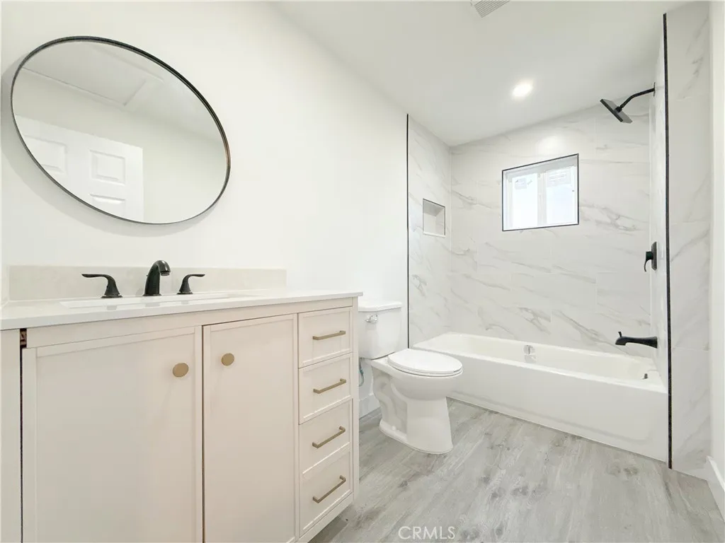 Absolutely stunning FULLY REMODELED single family residence consisting of a total of 3 bedrooms and 2 bathrooms! This home is extremely spacious and beautifully laid out! The total amount of square footage of this property is approximately 100 sq ft on an EXTREMELY LARGE 4,682 square foot lot! As you approach the house you will notice the BRAND NEW SOD and IRRIGATION SYSTEM along with a large concrete driveway that provides easy access to the LARGE DETACHED GARAGE in the backyard! It is also important to note this property has BRAND NEW PLUMBING AND BRAND NEW ELECTRICAL REWIRE! As you enter the home you will notice the gorgeous BRAND NEW laminate wood flooring throughout the entire property along with beautiful tile and vanities in each REMODELED bathrooms! Next you are immediately drawn to the fully BRAND NEW REMODELED KITCHEN! This spacious kitchen also features BRAND NEW beautiful quartz countertops and BRAND NEW shaker cabinets. Continuing to make your way through the home, youll discover each bedroom is very generous in size and they all offer an ample amount of closet space. Next to the kitchen you will find a spacious LAUNDRY area. In the backyard you will find beautiful landscaping with a large open area to park multiple vehicles. This property is conveniently located near schools, shopping, parks and freeways, this one is definitely a MUST SEE! Priced to sell, its going to go quickly so schedule a tour today!